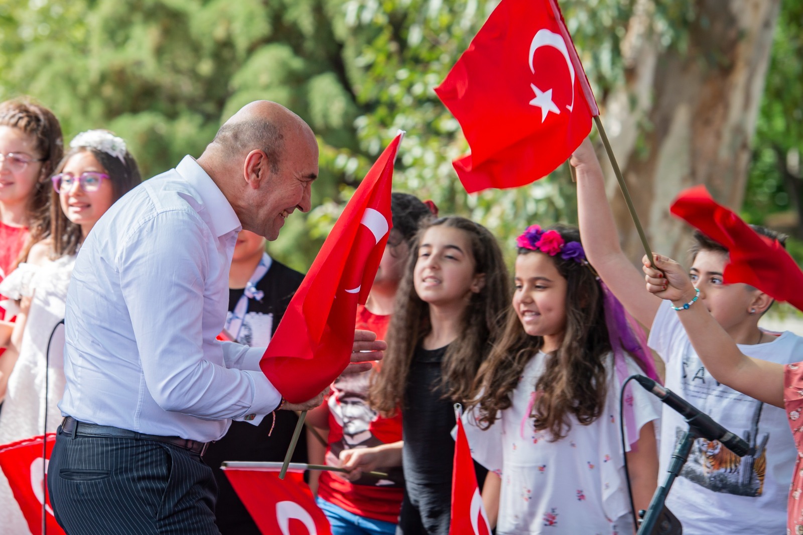 İzmir Büyükşehir Belediye Başkanı Tunç Soyer, 23 Nisan Ulusal Egemenlik ve Çocuk Bayramı kutlamaları için Kültüpark'ta çocuklarla bir araya geldi. 23 çocukla birlikte çekilen “İzmir İçin Söyle Çocuk Korosu” videosunun tanıtımına da katılan Başkan Soyer, sahnede miniklerle eğlenceli anlar yaşadı.