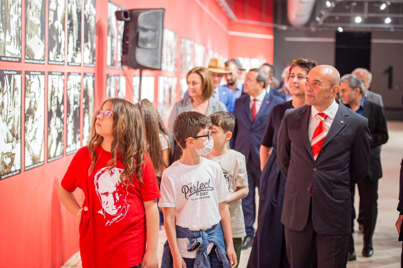 Açılışta konuşan İzmir Büyükşehir Belediye Başkanı Tunç Soyer, “Ulu Önder Mustafa Kemal Atatürk’ün başkanlığında bir araya gelen halkın temsilcileri tam 102 yıl önce Türkiye Büyük Millet Meclisi’ni (TBMM) kurdu. Gazi Mustafa Kemal, Türk halkının egemenliğini ilan ettiği bugünü tüm dünya çocuklarına armağan etti. Sevgili çocuklar sizlere baktığımızda Atamızdan emanet aldığımız Türkiye Cumhuriyeti’nin ve ulusal egemenliğimizin teminatı olan ışık saçan gözlerinizi görüyoruz. Umudumuz olan siz çocuklarımıza demokratik, adil, eşit ve refah dolu bir ülke miras bırakmaya gayret ediyoruz. Hanri Benazus ömrünü Atamızın hiç bilinmeyen fotoğraflarını bulmaya ve biriktirmeye adadı. Bu eşsiz koleksiyondan doğan sergi Atamızın çocuklarla geçirdiği anlara ayna tutuyor. Bu fotoğrafların her biri bize Gazi Mustafa Kemal’in çocuklara duyduğu sevgi ve güveni gösteriyor” dedi.