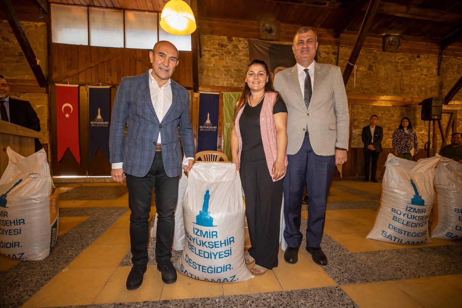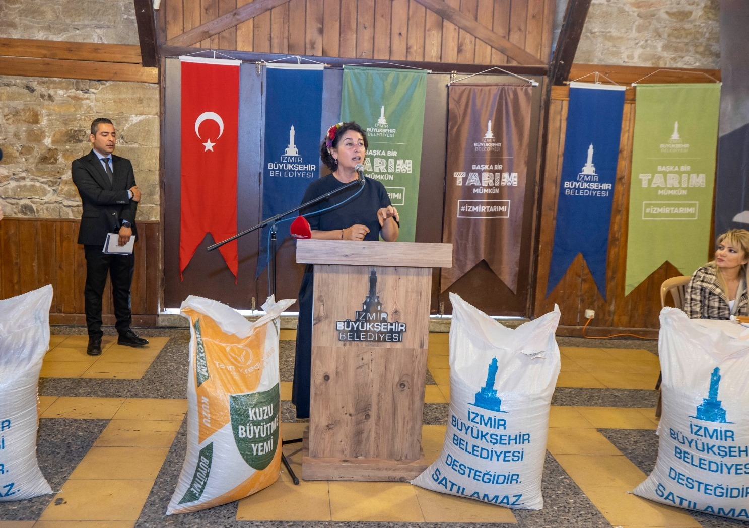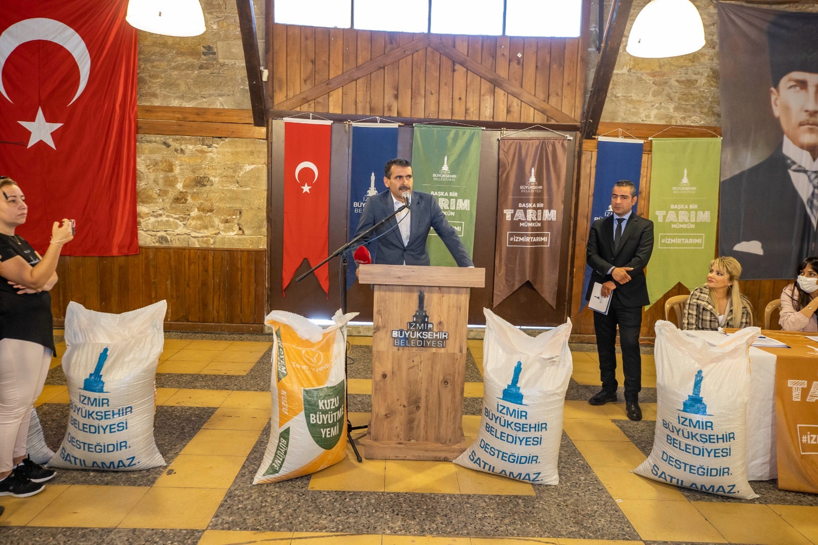 Engin Temiz de verilen desteklerden dolayı İzmir Büyükşehir Belediye Başkanı Tunç Soyer'e teşekkür etti. Konuşmaların ardından üreticilere yem dağıtıldı.