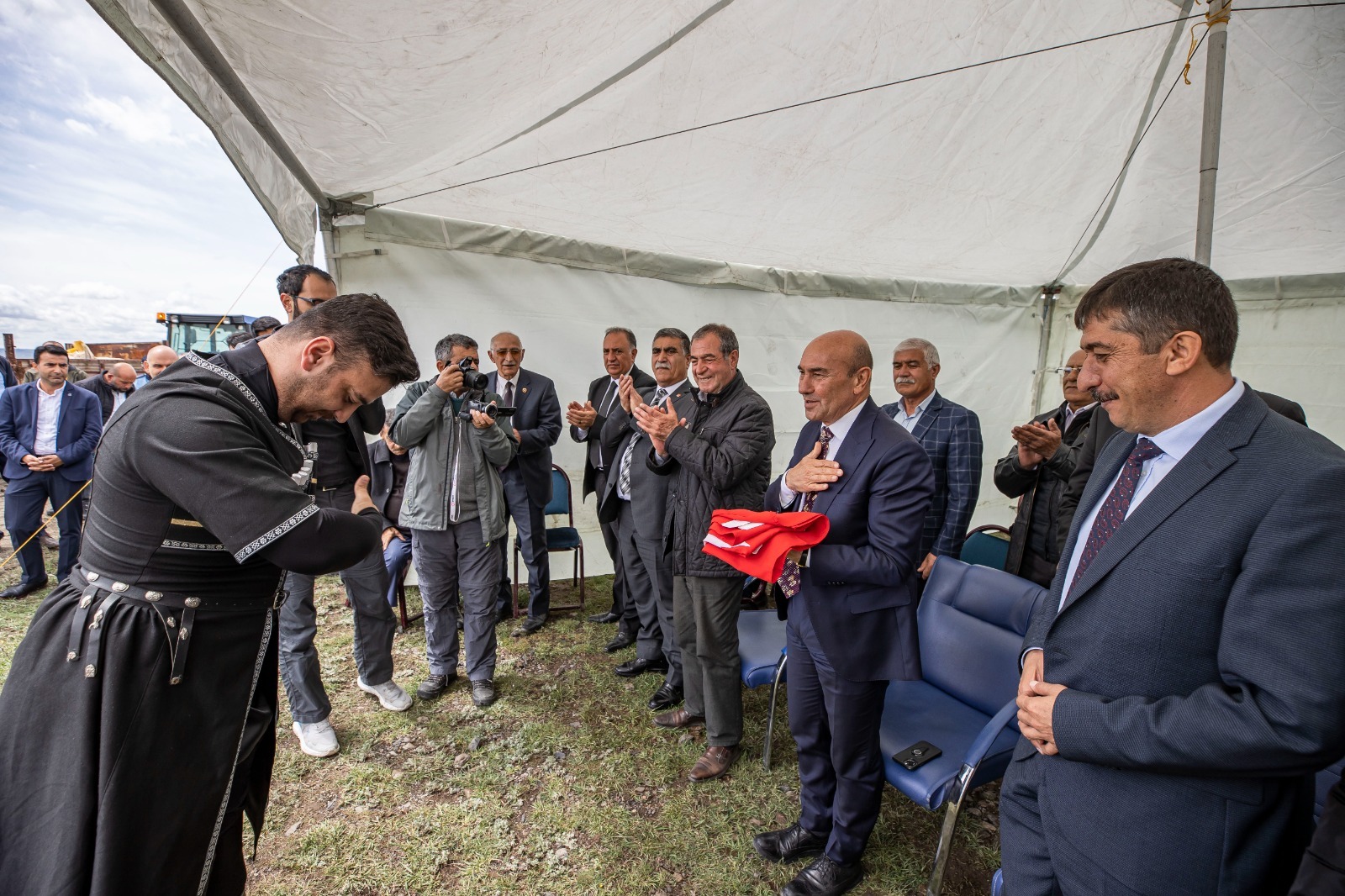 Başkan Soyer’e programda Susuz Belediye Başkanı Oğuz Yantemur, İzmir Büyükşehir Belediyesi Genel Sekreter Yardımcısı Ertuğrul Tugay, İzmir Büyükşehir Belediyesi Başkan Danışmanı Güven Eken, İzmir Büyükşehir Belediyesi Tarımsal Hizmetler Dairesi Başkanı Şevket Meriç, Cumhuriyet Halk Partisi (CHP) Kars İl Başkanı Taner Toraman, Ardahan Belediye Başkanı Faruk Demir, CHP İzmir İl Başkan Yardımcıları Yıldız Yılmaz, Saniye Bora Fıçı, Cumhur Dereli, Kazım Özdemir ile Polat Manduz, Ardahan Damal Belediye Başkanı Ergin Önal, Ardahan Hanak Belediye Başkanı Ayhan Büyükkaya, CHP Kars il yöneticileri, ilçe başkanları, kadın ve gençlik kollarının temsilcileri, CHP Ardahan il yöneticileri, belediye meclis üyeleri, mahalle muhtarları, üreticiler eşlik etti.
