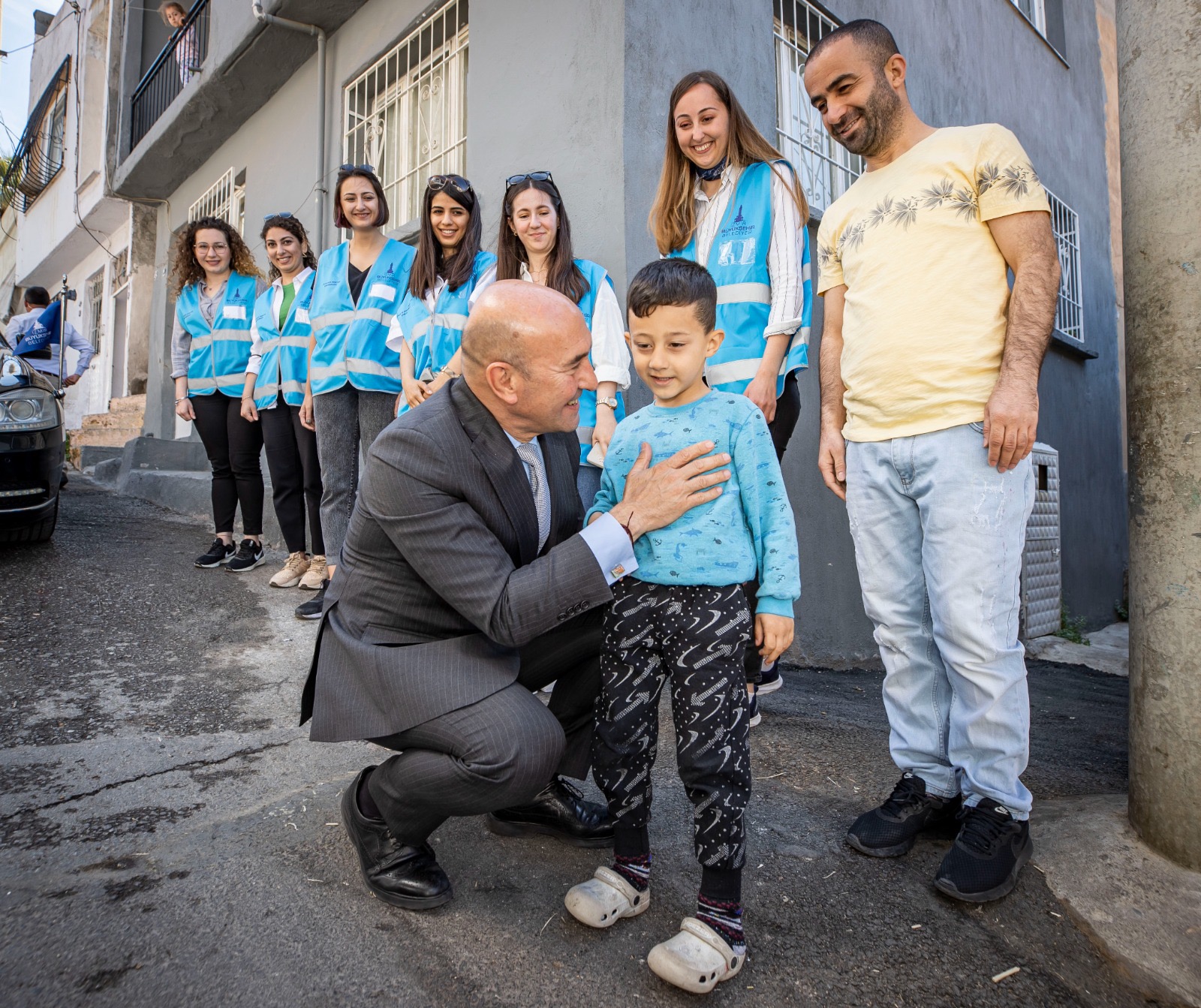 İzmir Büyükşehir Belediye Başkanı Tunç Soyer hamilelik döneminden başlayarak doğum sonrasındaki süreçte anneye destek olunmasını sağlayan İzmir95 projesi kapsamındaki Rojbin ve Abdulbari Alp çiftini Kadifekale’deki evlerinde ziyaret etti. Başkan Tunç Soyer, Yakup (8), Yasin (5) ve Melek (1 aylık) ile yakından ilgilendi. Bir yıl boyunca Kadifekale’deki Masal Evi’ne giden Yasin, Başkan Soyer’in “Büyüyünce ne olmak istiyorsun?” sorusunu “Polis olacağım, hırsızları yakalayacağım” diye yanıtladı. Büyük çocuk Yakup ise aynı soruyu “Mimar olacağım” diye yanıtladı.