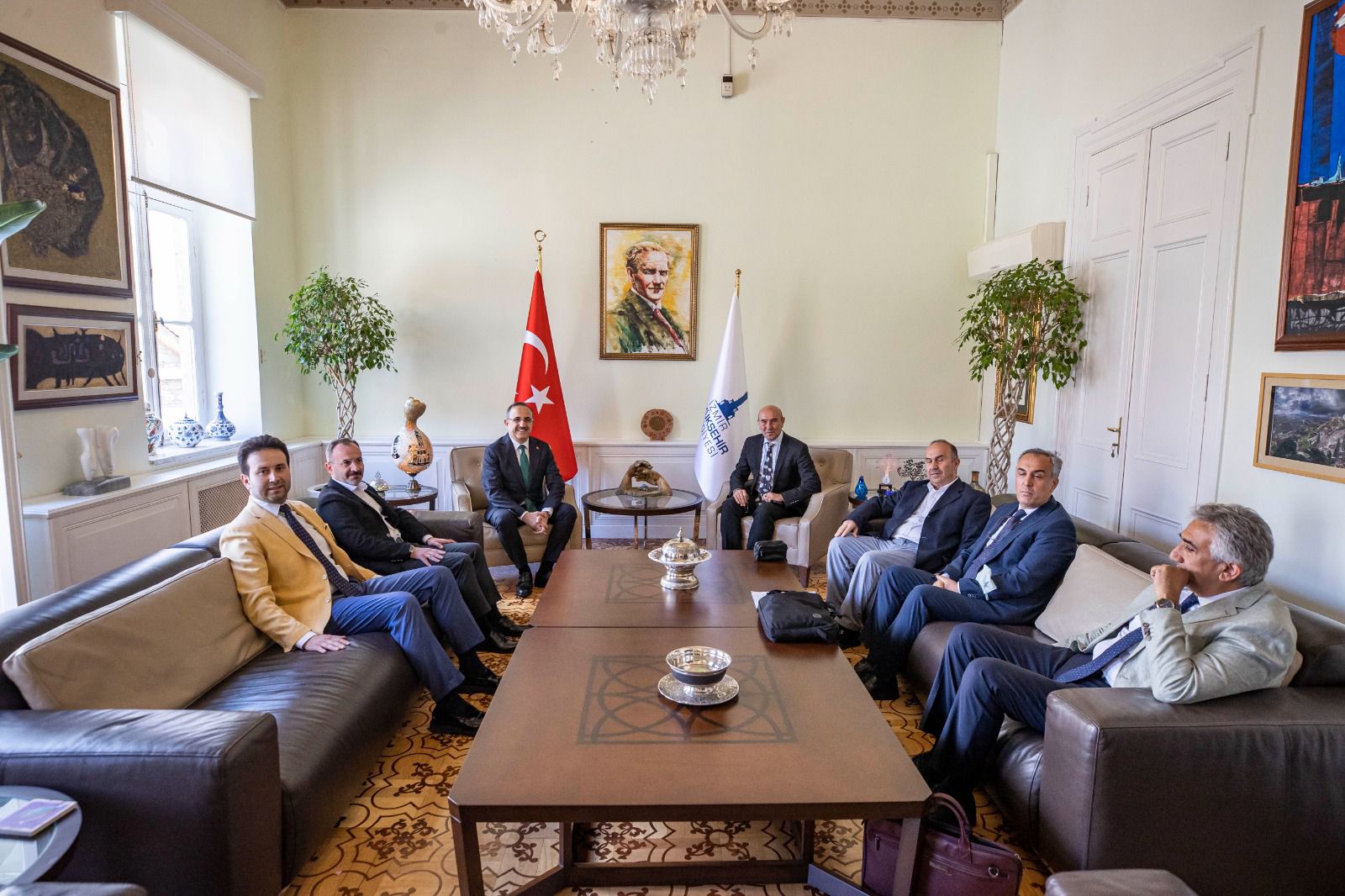 İzmir Büyükşehir Belediye Başkanı Tunç Soyer, AK Parti İzmir İl Başkanı Kerem Ali Sürekli ve beraberindeki heyeti ağırladı. Basmane Çukuru, mezarlık ve kentsel dönüşüm gibi kentin uzun süredir gündeminde yer alan konuların masaya yatırıldığı toplantıda ortak irade mesajı verildi. Görüşmeden umutlu olduğunu ifade eden Başkan Soyer, “Önemli olan müzakere masasının kurulmuş olmasıdır” dedi.