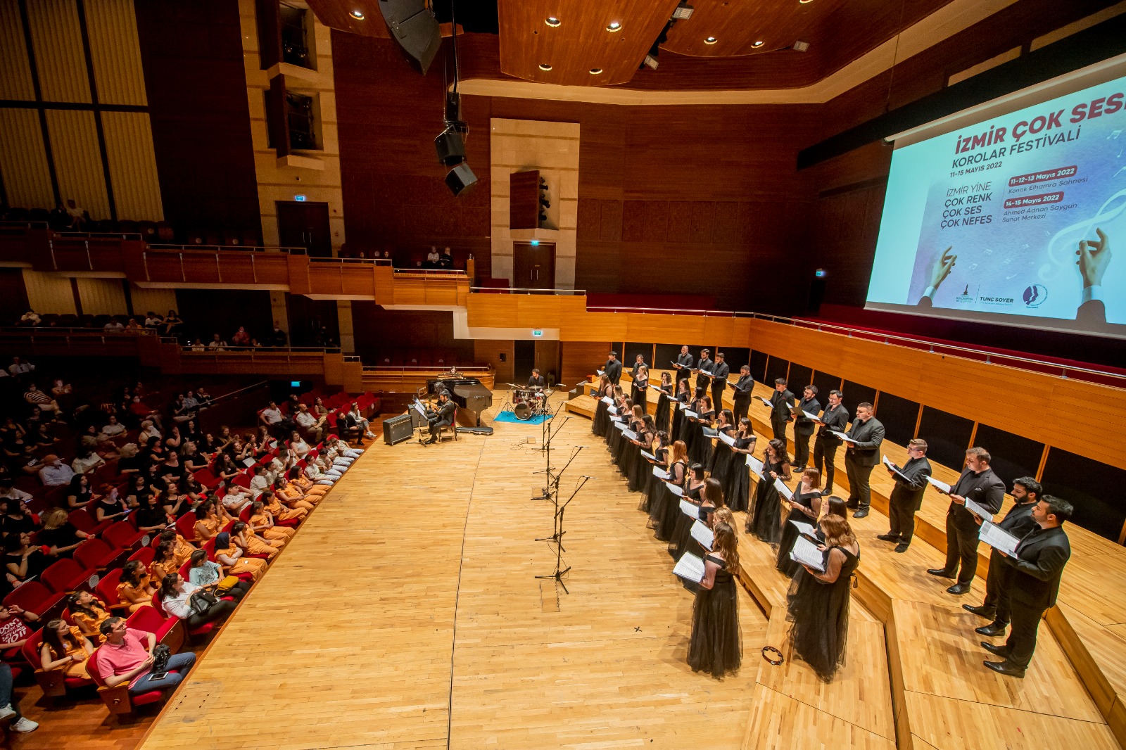 İzmir Büyükşehir Belediyesi ve Türkiye Polifonik Korolar Derneği işbirliğiyle bu yıl ilk kez “İzmir yine çok renk çok ses çok nefes” sloganıyla düzenlenen İzmir Çok Sesli Korolar Festivali, Ahmed Adnan Saygun Sanat Merkezi’ndeki konserle son buldu. İzmir Büyükşehir Belediye Başkanı Tunç Soyer de konseri dinleyenler arasındaydı.