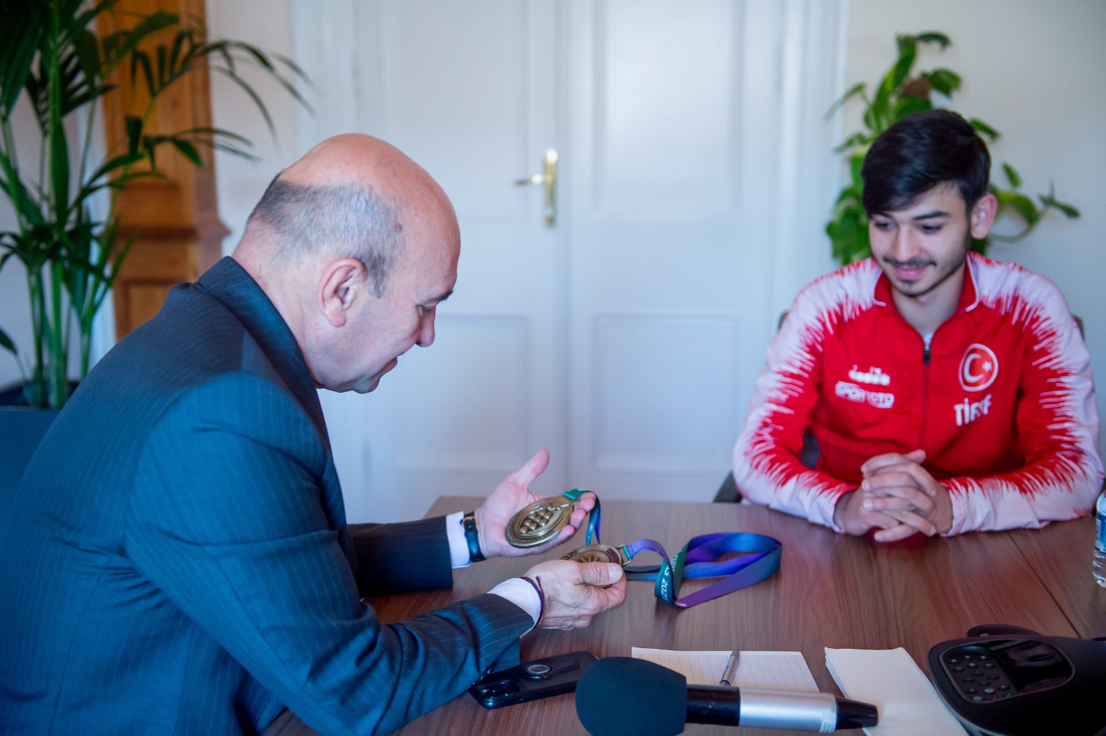 İşitme engelli olimpiyat şampiyonları Başkan Soyer’i ziyaret etti