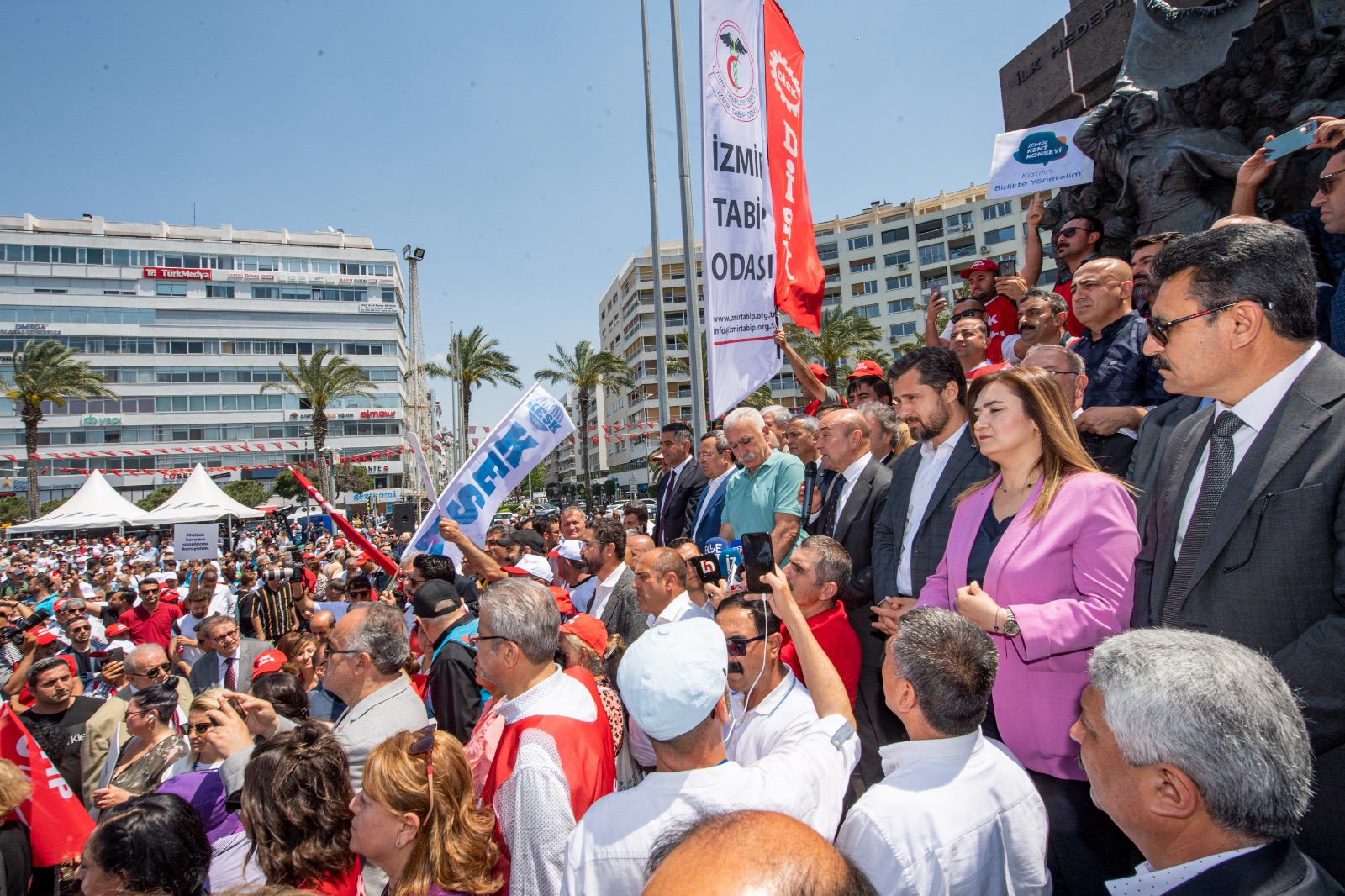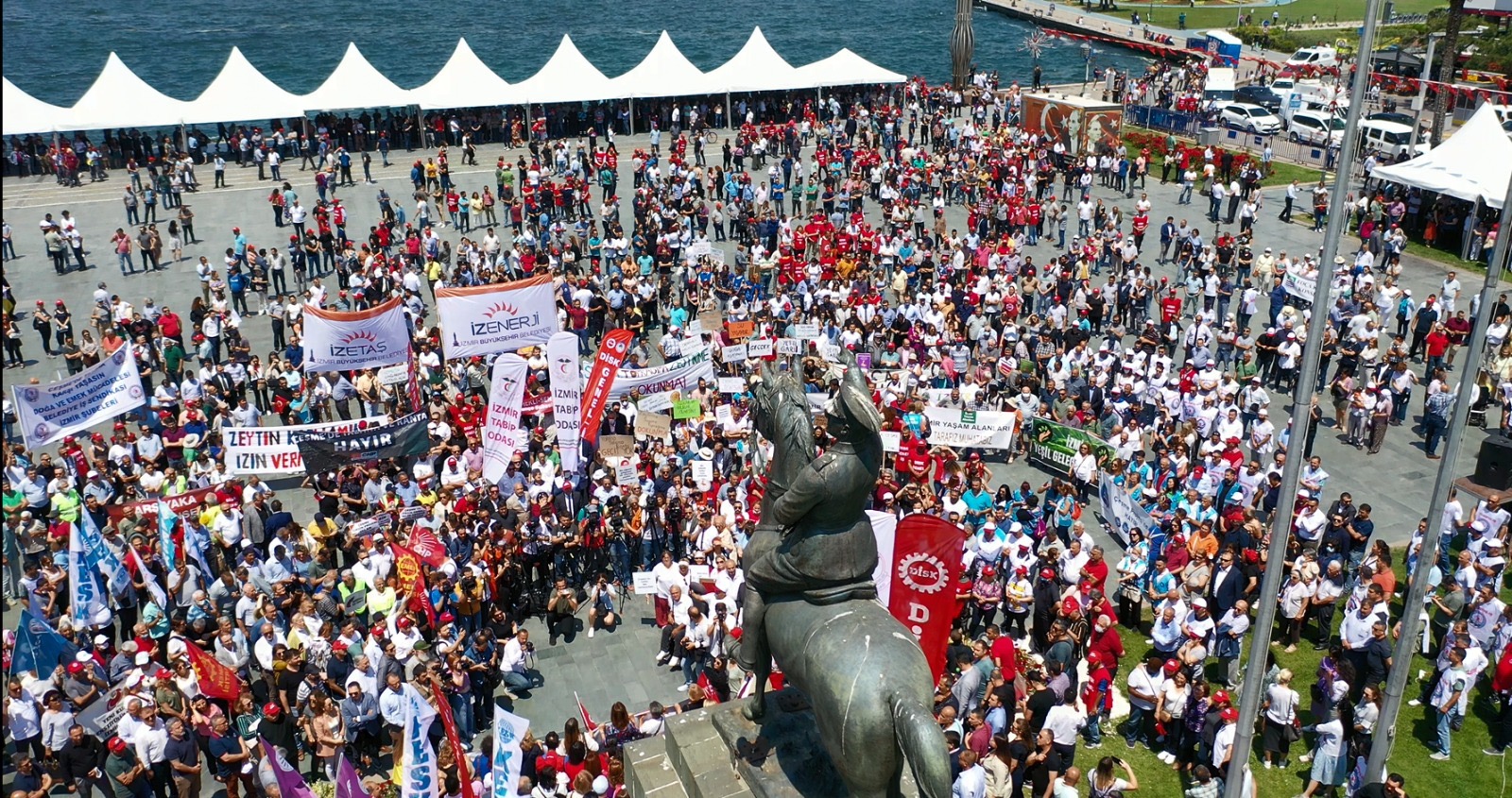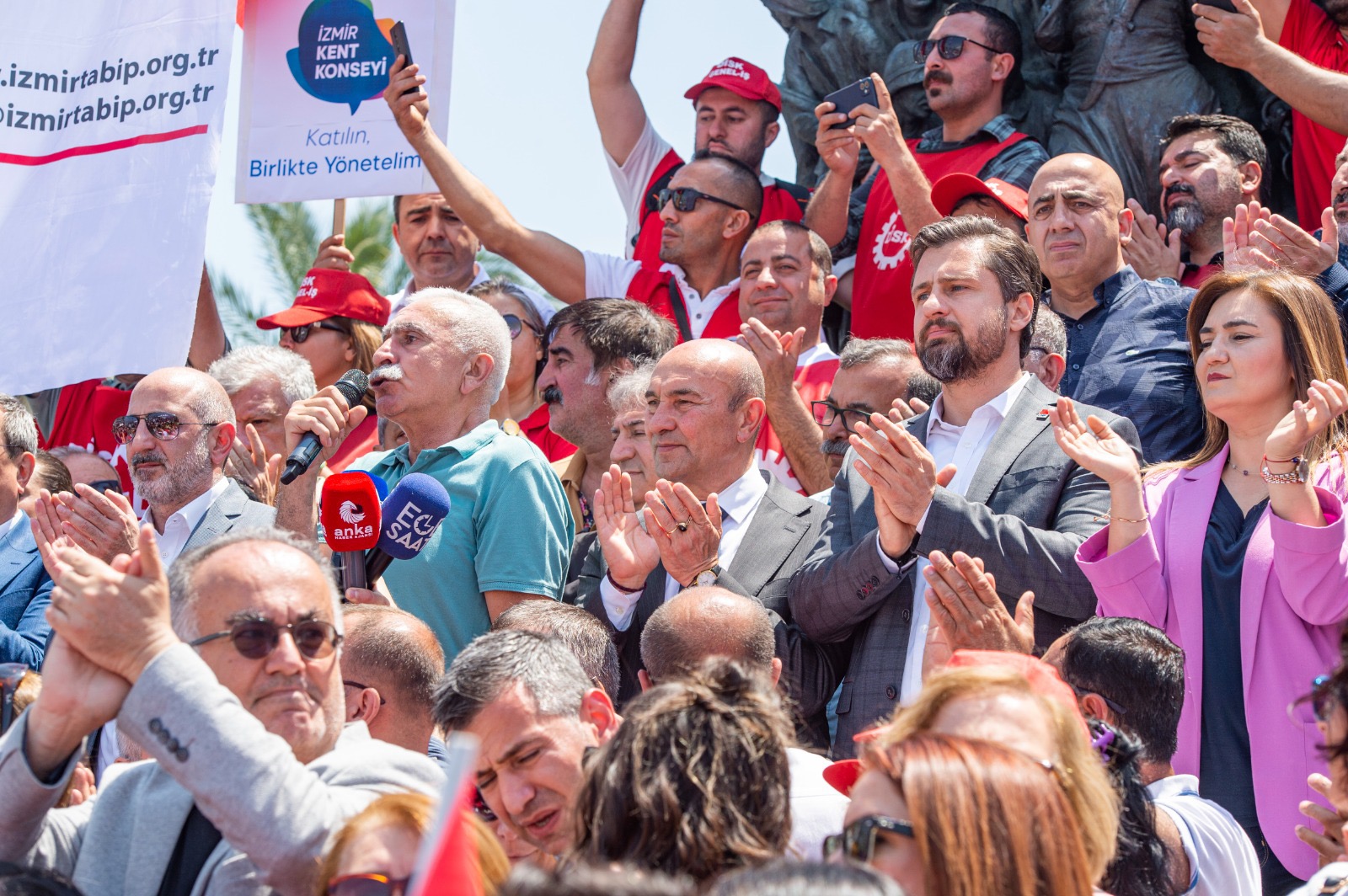 Basın açıklamasına İzmir Büyükşehir Belediye Başkanı Tunç Soyer’in yanı sıra Cumhuriyet Halk Partisi (CHP) Genel Başkan Yardımcısı Ali Öztunç, CHP İzmir milletvekilleri Sevda Erdan Kılıç ve Tacettin Bayır, CHP İzmir İl Başkanı Deniz Yücel, Çeşme Belediye Başkanı Ekrem Oran, Konak Belediye Başkanı Abdül Batur, Karşıyaka Belediye Başkanı Cemil Tugay, Foça Belediye Başkanı Fatih Gürbüz, Narlıdere Belediye Başkanı Ali Engin, Bornova Belediye Başkanı Mustafa İduğ, Dikili Belediye Başkanı Adil Kırgöz, Beydağ Belediye Başkanı Feridun Yılmazlar, Çiğli Belediye Başkanı Utku Gümrükçü, İzmir Büyükşehir Belediyesi Başkan Vekili Mustafa Özuslu, CHP ilçe başkanları, İzmir Büyükşehir Belediyesi ve ilçe belediyelerin meclis üyeleri, sendikalar, meslek odaları, çevre dernekleri, sivil toplum kuruluşu temsilcileri, işçiler, muhtarlar ve yüzlerce yurttaş katıldı.