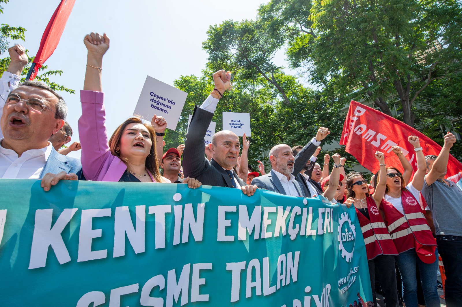 Çeşme Yarımadası'nda Kültür ve Turizm Bakanlığı tarafından yapılmak istenen ve ilçenin yüzde 55’lik alanını kapsayan “Çeşme Turizm Projesi”ne karşı, İzmir Büyükşehir Belediyesi, İzmir Barosu, Türk Mühendis ve Mimar Odaları Birliği (TMMOB), İzmir Tabip Odası, Ege Çevre ve Kültür Platformu (EGEÇEP), Devrimci İşçi Sendikaları Konfederasyonu (DİSK), Türkiye İşçi Sendikaları Konfederasyonu (TÜRK-İŞ), Kamu Emekçileri Sendikaları Konfederasyonu (KESK) ortak basın açıklaması düzenledi.