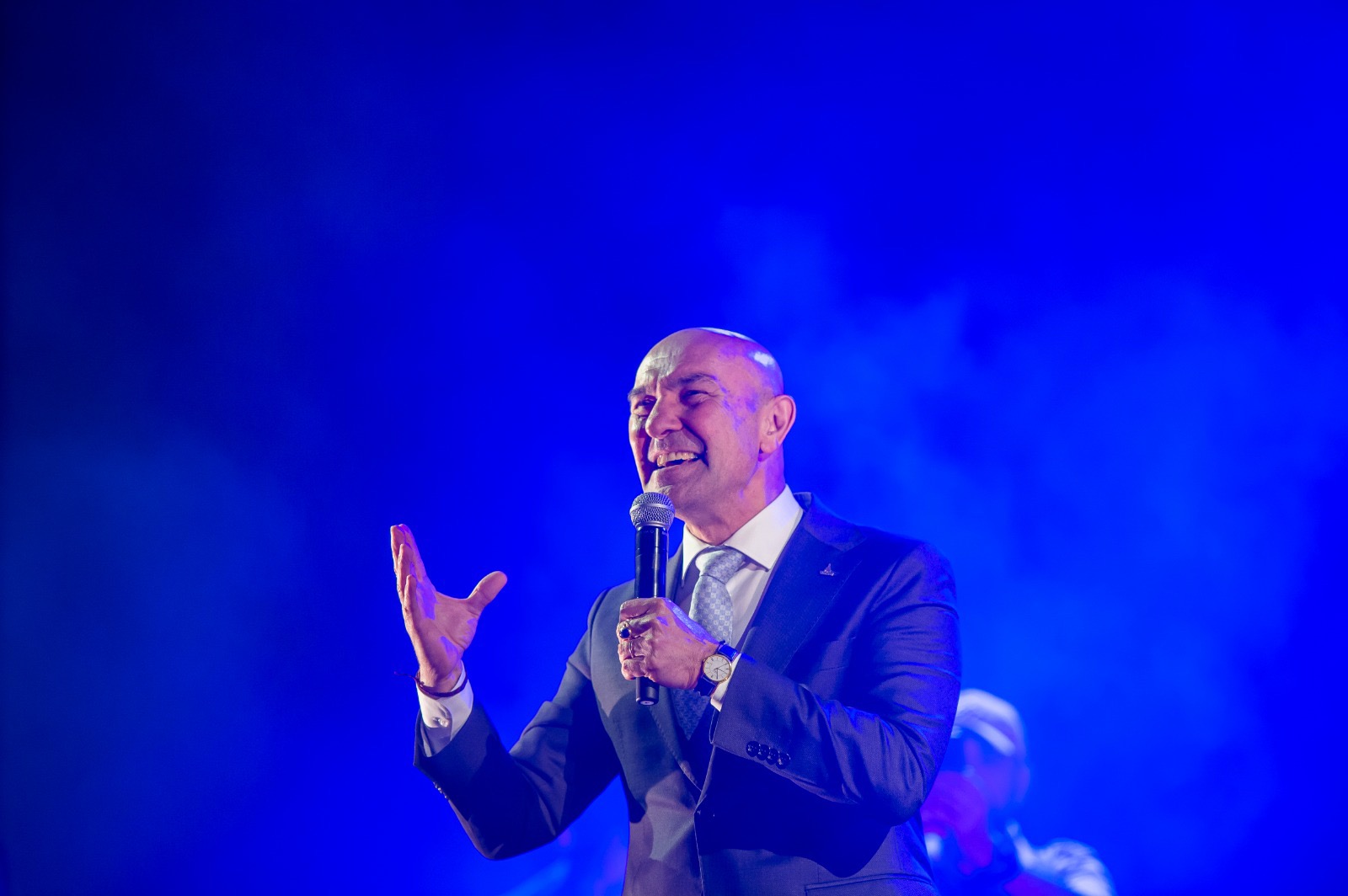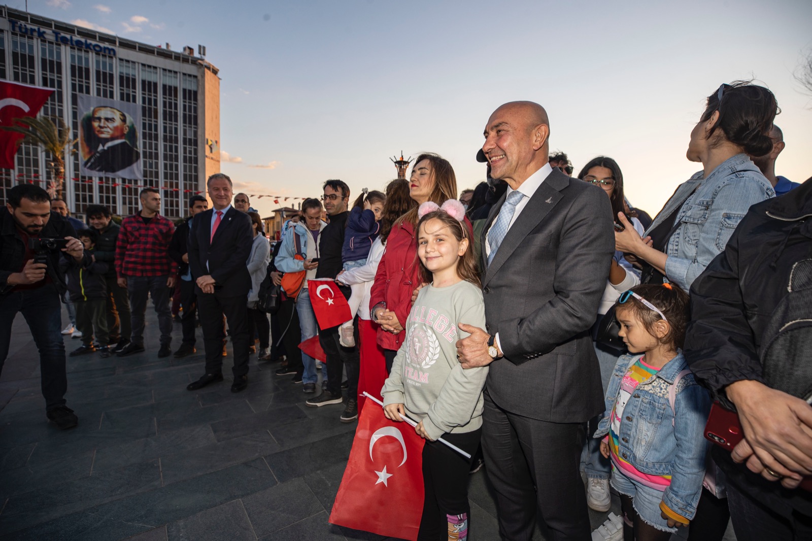 Sahneden gençlere seslenen Başkan Soyer, “Kurtuluşun ve kuruluşun şehri İzmir... Sizler İzmir'in dağlarında açan çiçeklersiniz. Sizler Türkiye'ye umut çiçeklerisiniz. Hepinizi çok seviyorum, bayramımız kutlu olsun” dedi. Teoman'ın ardından DJ Mahmut Orhan sahne aldı.