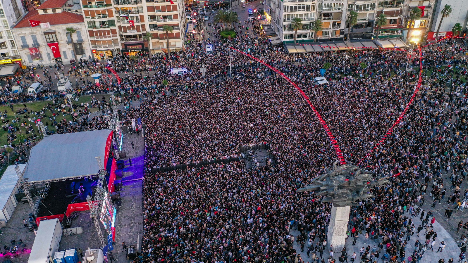 İzmir'de 19 Mayıs Atatürk'ü Anma, Gençlik ve Spor Bayramı için düzenlenen fener alayında binlerce İzmirli Cumhuriyet Meydanı’ndan Gündoğdu Meydanı’na 350 metrelik Atatürk posterini taşıdı. Gündoğdu Meydanı'ndan gençlere seslenen İzmir Büyükşehir Belediye Başkanı Tunç Soyer, “Sizler İzmir'in dağlarında açan çiçeklersiniz. Sizler Türkiye'nin umut çiçeklerisiniz” dedi.