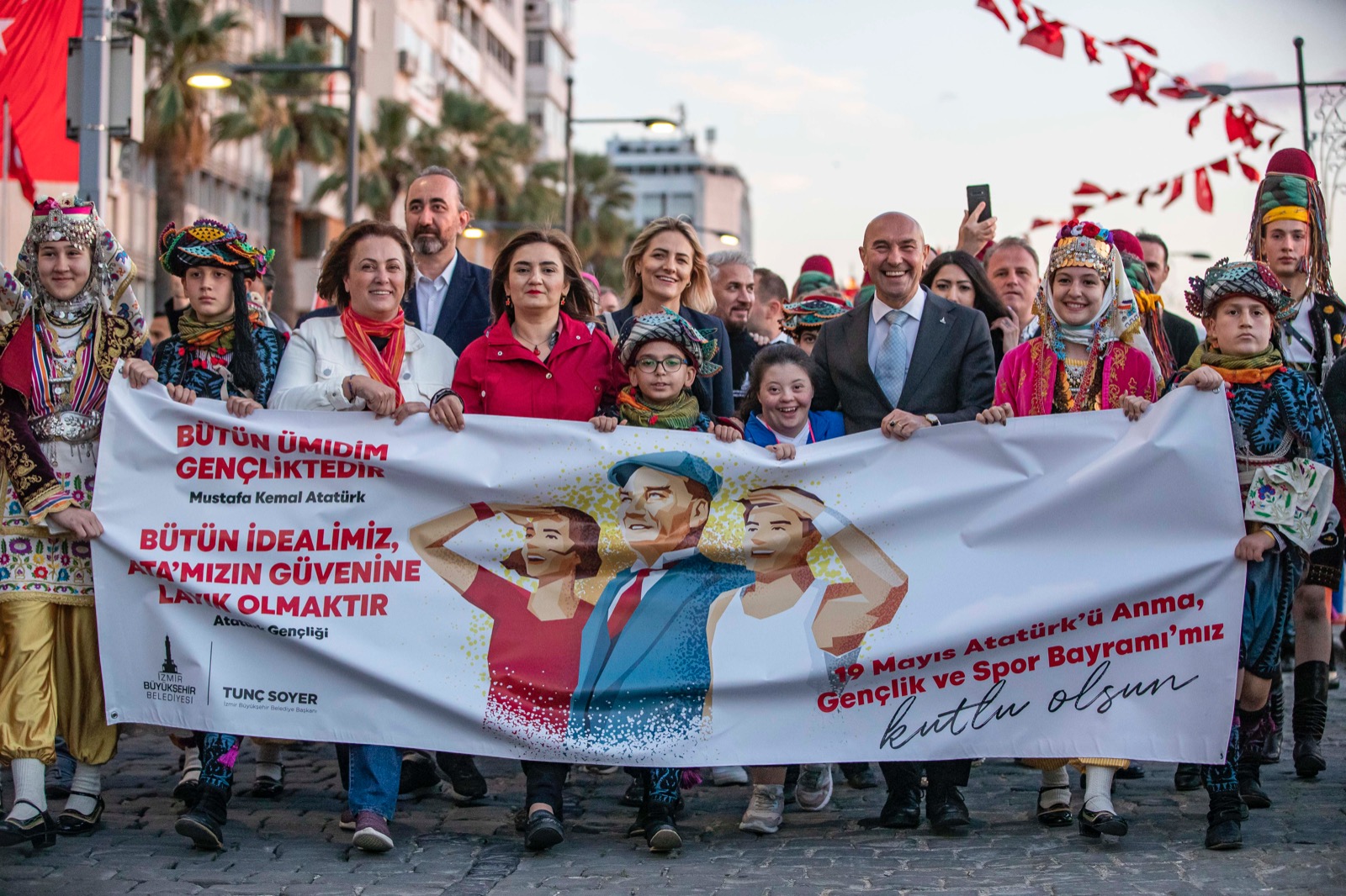 İzmir'de 19 Mayıs Atatürk’ü Anma Gençlik ve Spor Bayramı, İzmir Büyükşehir Belediyesi tarafından kentin dört bir yanında düzenlenen etkinliklerle kutlandı. 19 Mayıs coşkusu “Gençlik Yürüyüşü” ile sokaklara taştı. Binlerce İzmirlinin katılımıyla fener alayı oluşturuldu ve 350 metrelik Atatürk posteri Cumhuriyet Meydanı’ndan Gündoğdu Meydanı’na taşındı. 19 Mayıs Gençlik Yürüyüşü'ne İzmir Büyükşehir Belediye Başkanı Tunç Soyer, CHP İzmir Milletvekili Sevda Erdan Kılıç, İzmir Büyükşehir Belediyesi’nin bürokratları, meclis üyeleri ve yurttaşlar katıldı.