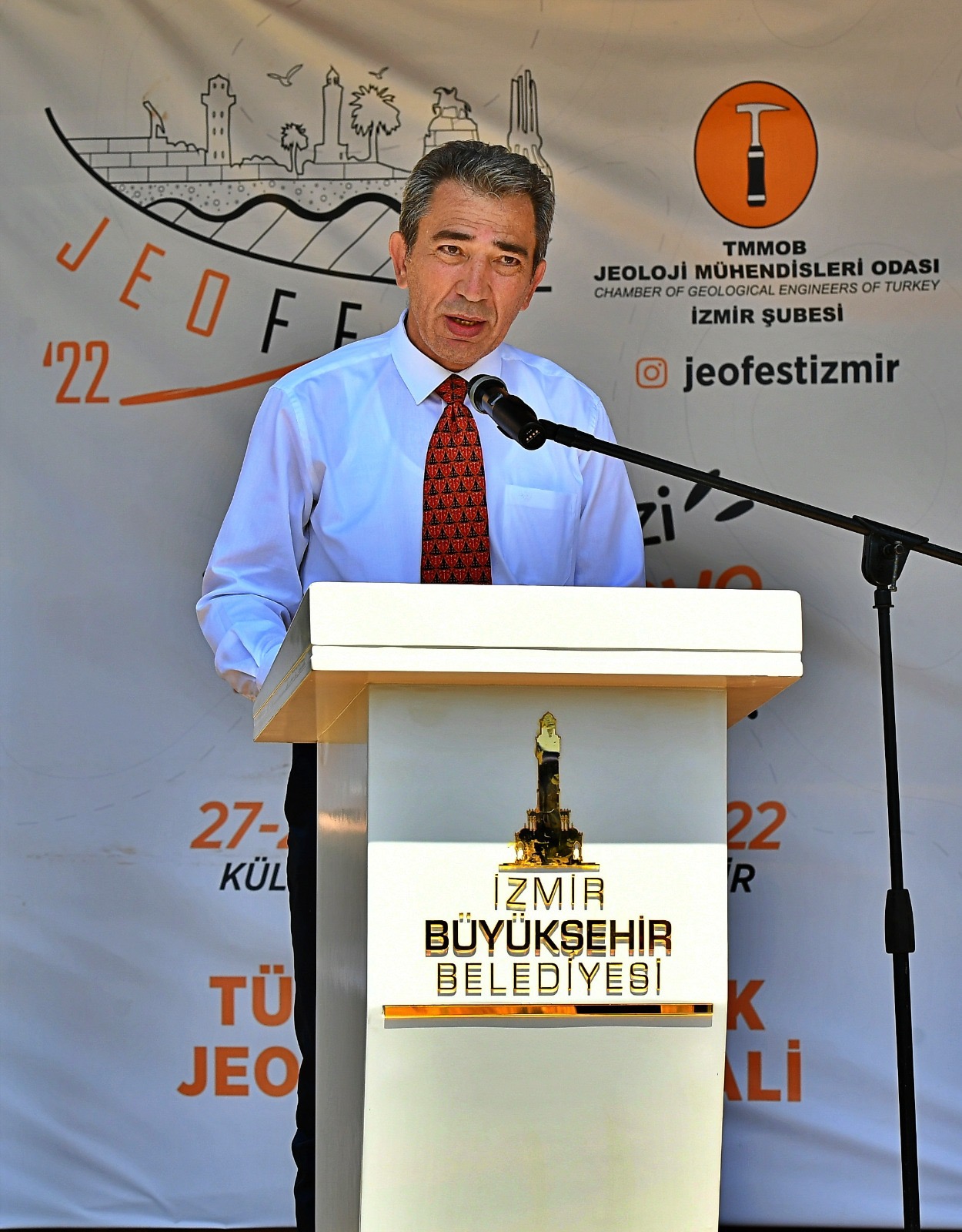 Toplumda bilimsel farkındalık oluşturmak ve beş temel bilim dalından biri olan jeoloji biliminin tanıtımını yapmak amacıyla düzenlenen JEOFEST’22’nin açılışında konuşan Başkan Önalan, festivalin Türkiye’de ilk kez yapılmasından mutluluk duyduklarını ifade etti. Önalan, “Jeoloji ne yazıktır ki seçmeli ders olan coğrafya kitaplarının arasına 2-3 sayfa sıkıştırılmış doğrulu tartışmalı bilgilerle anlatılamaz. Bu nedenle jeoloji dersinin müfredat programlarında yer alması kaçınılmazdır. Jeolojinin çok daha ciddi tanıtıma ihtiyacı vardır. Bu festivalin amacına ulaşması en büyük dileğimizdir. Başta İzmir Büyükşehir Belediye Başkanımız Tunç Soyer olmak üzere, bilim insanlarımıza, katkı veren kamu kurumu ve derneklere, firmalara, kişilere, gece gündüz demeden çalışan tüm arkadaşlarıma minnet borçluyuz. Bilimle, emekle, umutla ve inatla üretmeye, çalışmaya ve ülkemiz kaynaklarını tanıtıp korumaya devam ediyoruz” dedi.