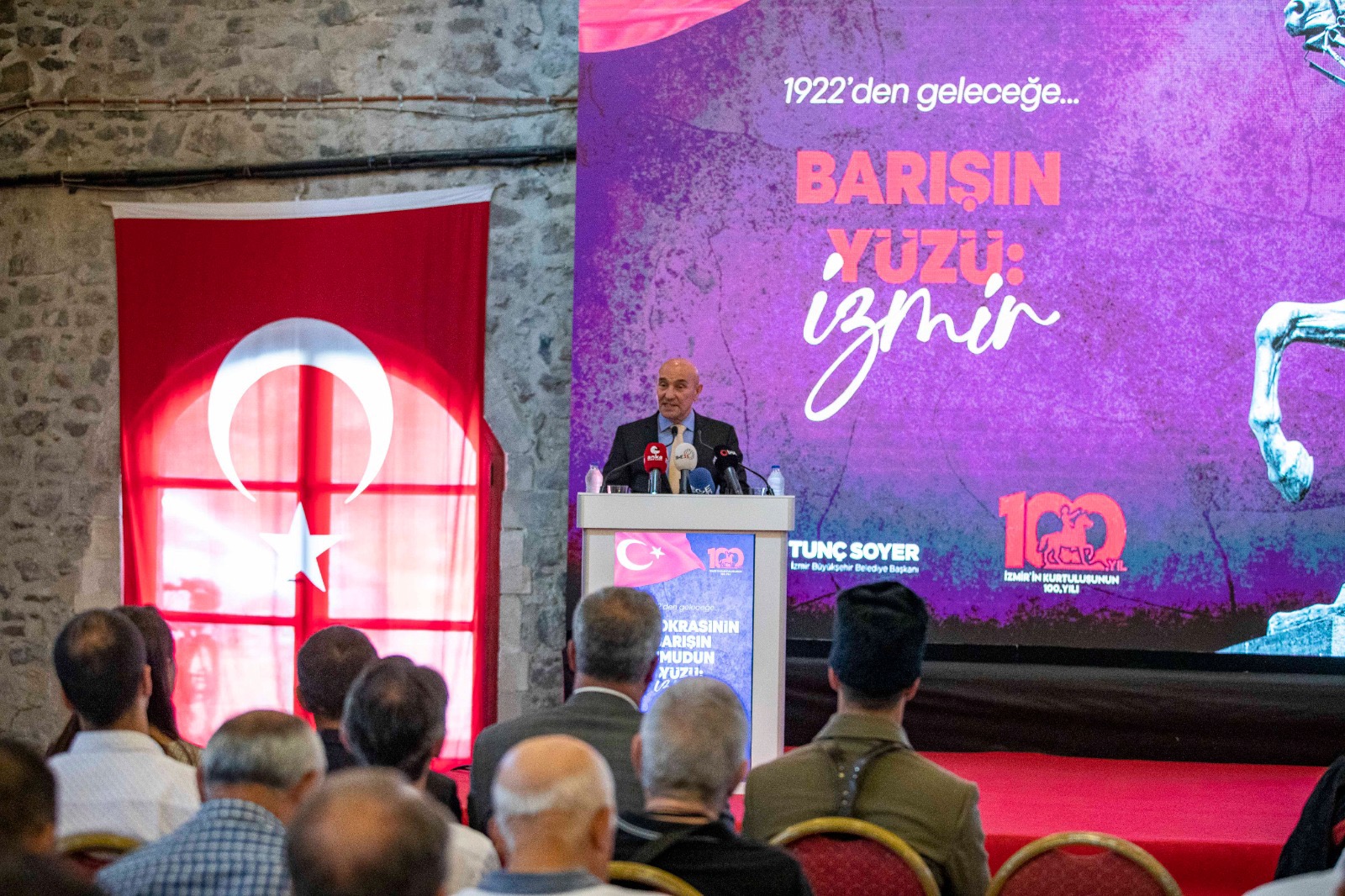 İzmir Büyükşehir Belediye Başkanı Tunç Soyer, “Şehrimizin kurtuluşunun bir asrı tamamladığı bu yıl, bizim için barışın 100 yıllık hikayesidir. İzmir’in kurtulduğu gün, 9 Eylül, aynı zamanda Türkiye Cumhuriyeti’nin kuruluşunun başladığı gündür. Bu nedenle şehrimiz, Türkiye için aynı zamanda umudun yüzüdür. Bu yıl İzmir’in kurtuluşunun 100’üncü yılını büyük bir coşkuyla kutlayacak ve ardından Cumhuriyetimizin ikinci yüzyılını karşılayacağız. Birinci yüzyıl, yaşadığımız tüm zorluklara rağmen barışın yüzyılı oldu. Hiç şüpheniz olmasın ki çocuklarımıza bırakacağımız ikinci yüzyıl da yine barışın yüzyılı olacak” dedi.