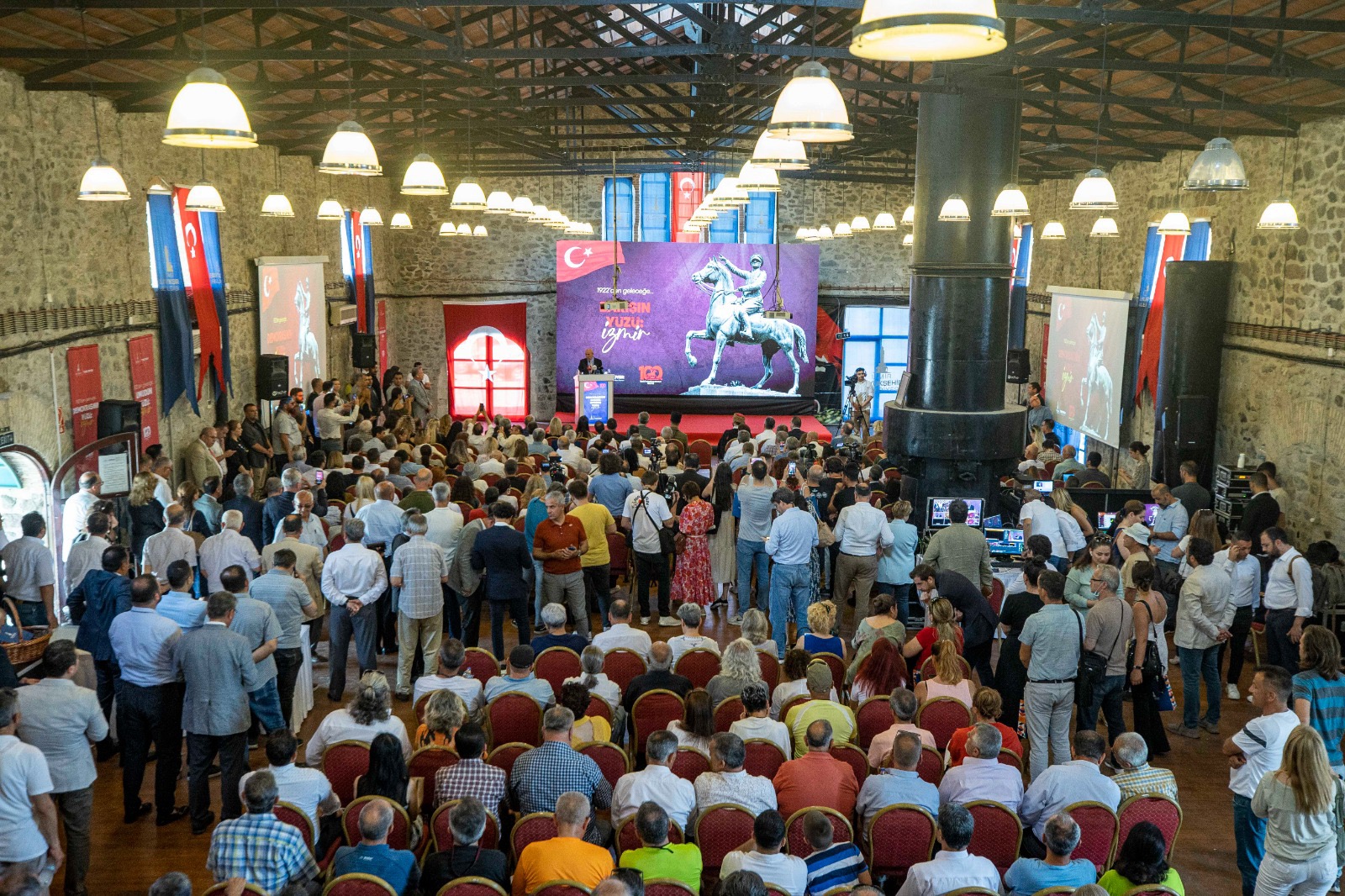 İzmir Büyükşehir Belediye Başkanı Tunç Soyer, Tarihi Havagazı Fabrikası’nda İzmir’in kurtuluşunun 100’üncü yıl dönümü için düzenlenen etkinliklerin tanıtım toplantısına ev sahipliği yaptı. Başkan Soyer, 400 kilometrelik Zafer ve Anma Yürüyüşü’nden görkemli 9 Eylül kutlamasına ve 2023’te İzmir’de düzenlenecek İktisat Kongresi’ne değinerek İzmirlilere seslendi: “Özellikle 9-10 ve 11 Eylül tarihlerinde İzmir’den ayrılmayın. Tarihi üç gün yaşanacak. Tüm İzmir’i ayağa kaldıracağız.”
