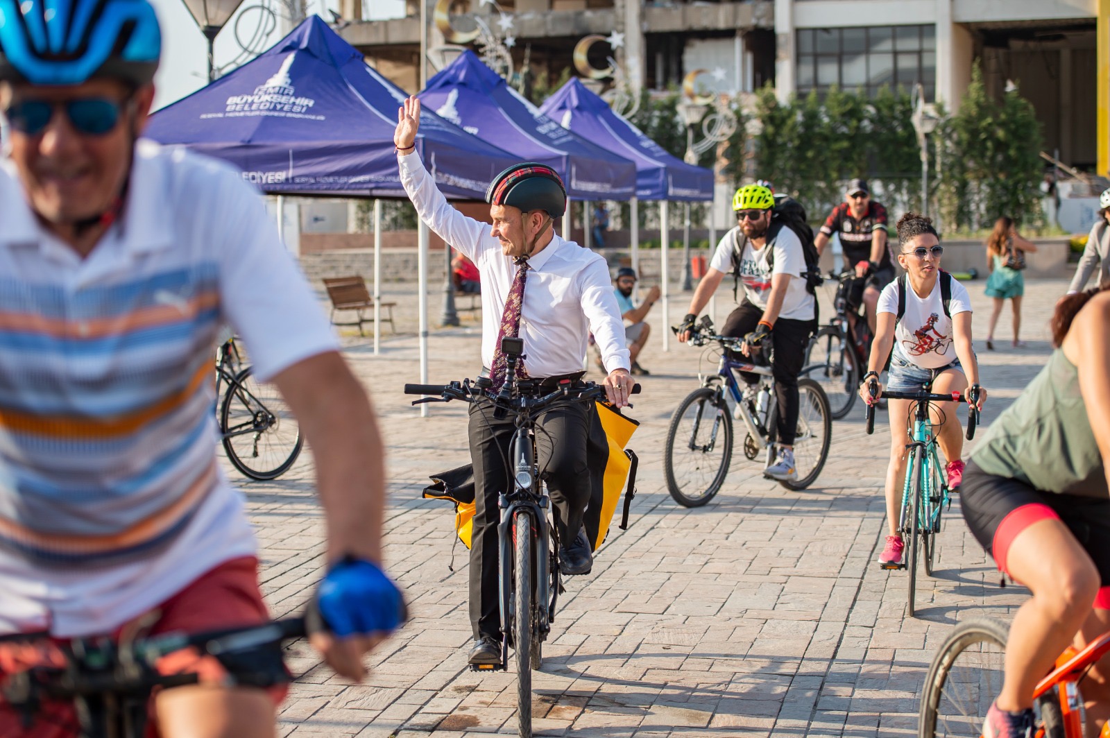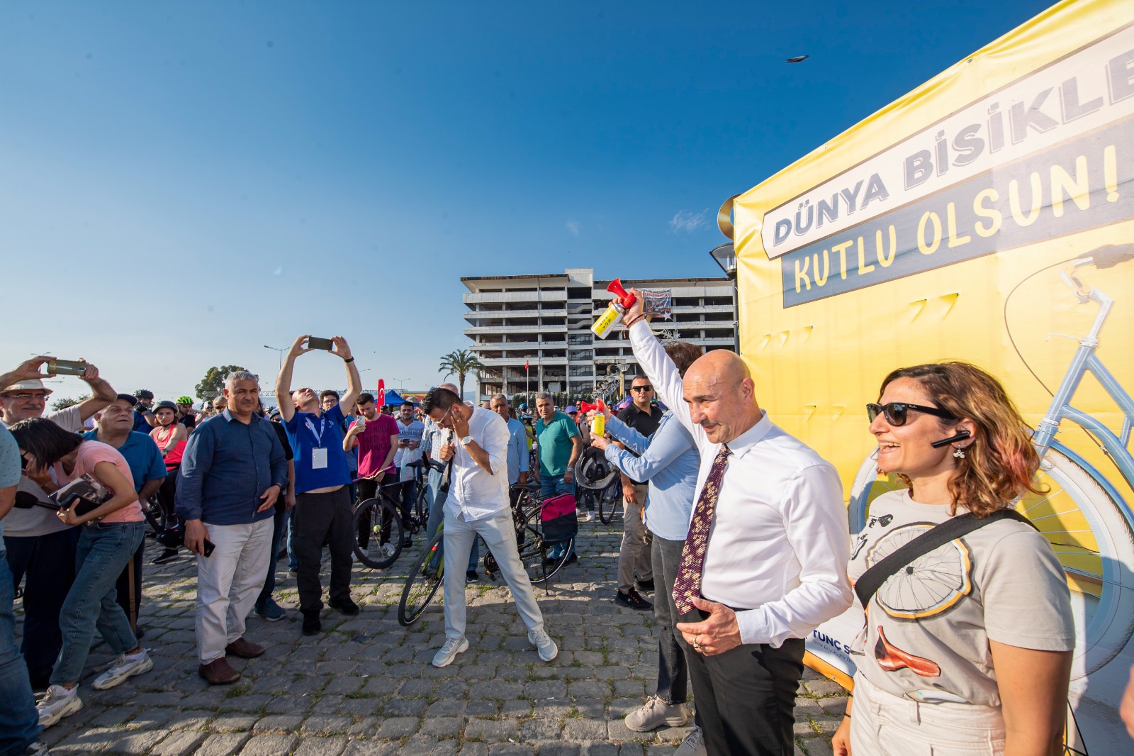 Bisikletin bir ulaşım aracı olarak İzmirlilerin günlük hayatının bir parçası olmasını istediklerini ifade eden Başkan Soyer, “Kentlerdeki nüfus artıyor. Artan nüfus beraberinde çarpık kentleşmeyi, kirliliği ve buna bağlı motorlu taşıt bağımlılığını getiriyor. İşte bu yüzden geleceğin şehirleri artık motorlu taşıtlar için değil, insanlar için tasarlanıyor. İzmir, Sakin Şehir Metropol programımız sayesinde bu değişime Türkiye’de önderlik ediyor. İklim krizini ve kuraklığı yenmek için, şehrimizdeki doğa olaylarının bir felakete dönüşmemesi için. Dünya Bisiklet Günü vesilesiyle, tüm İzmirlileri motorlu taşıt bağımlılığını mümkün olduğunca azaltmaya davet ediyorum” dedi.