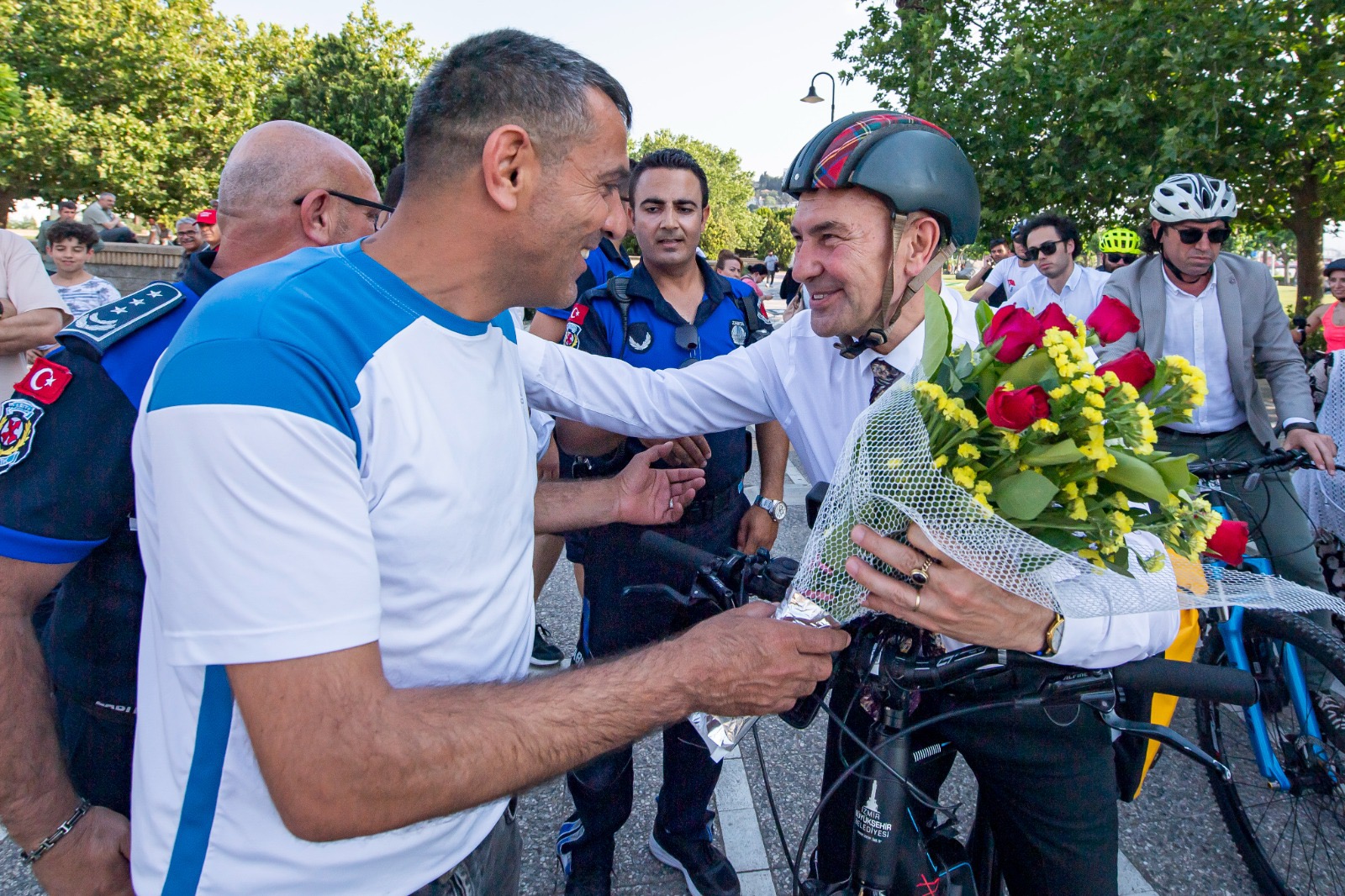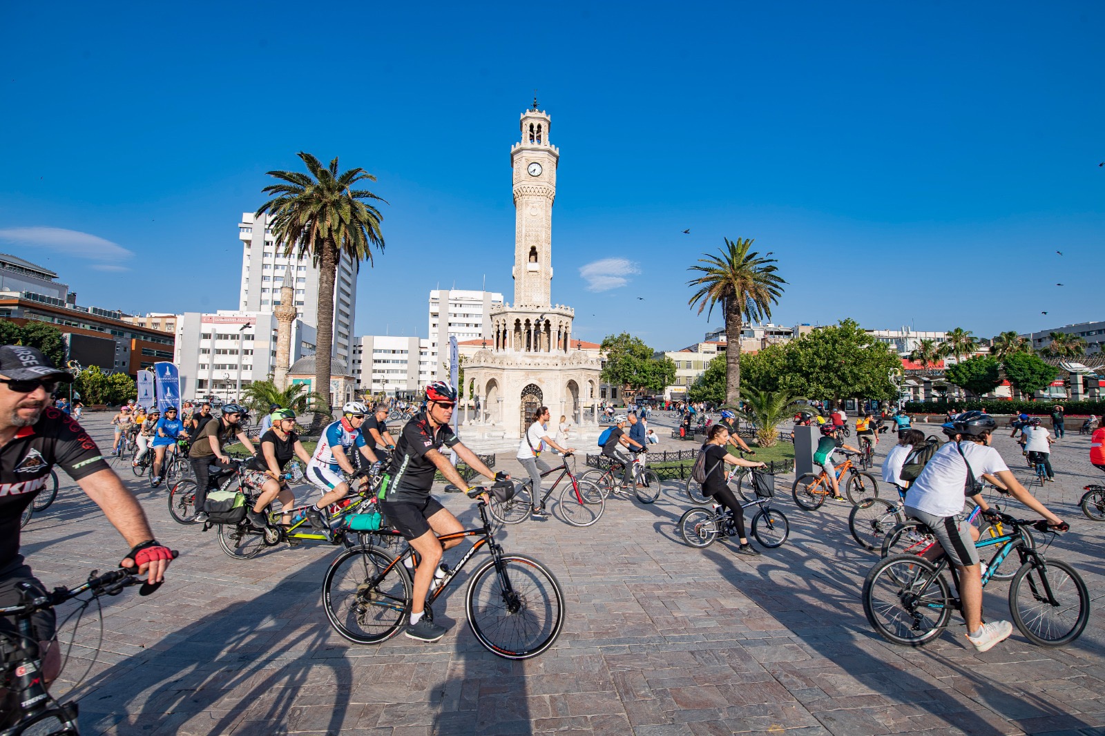 Bisikletçiler Konak Meydanı’ndan başlayarak Mustafa Kemal Sahil Bulvarı üzerinden İnciraltı Kent Ormanı’na kadar yaklaşık 7,5 kilometre pedal çevirdi.