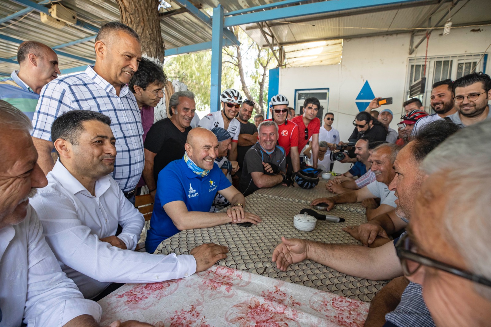 Menemen Şehir Parkı’n dan başlayan bisiklet sürüşünü 5 kilometrelik mesafenin ardından Belen Köyü'nde sonlandıran Başkan Soyer köy kahvesinde mahalle muhtarları, üretici kooperatifleri, sivil toplum örgütü temsilcileri ve yurttaşlarla bir araya geldi.