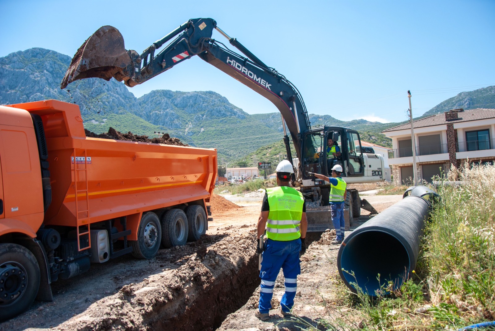 İZSU, İzmir’in alt yapı ağını güçlendirecek yatırımlara imza atmaya devam ediyor. Modern ve güçlü altyapı çalışmaları kapsamında İzmir - Karaburun yolu üzerindeki menfezlerde başlayan çalışmalar doğal dere yatağındaki konutların taşkın riskini de en aza indirecek.