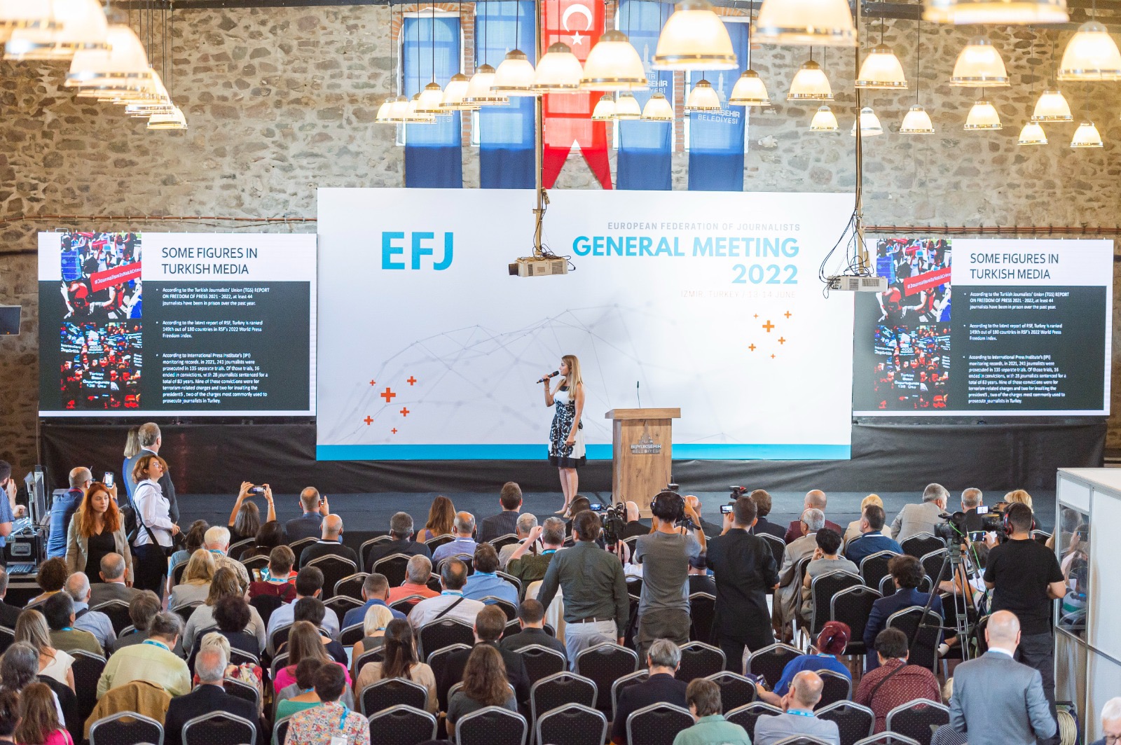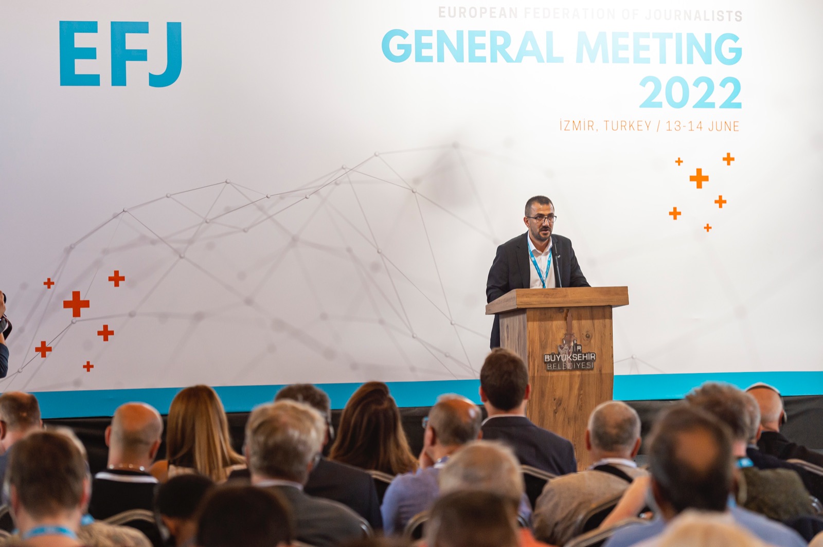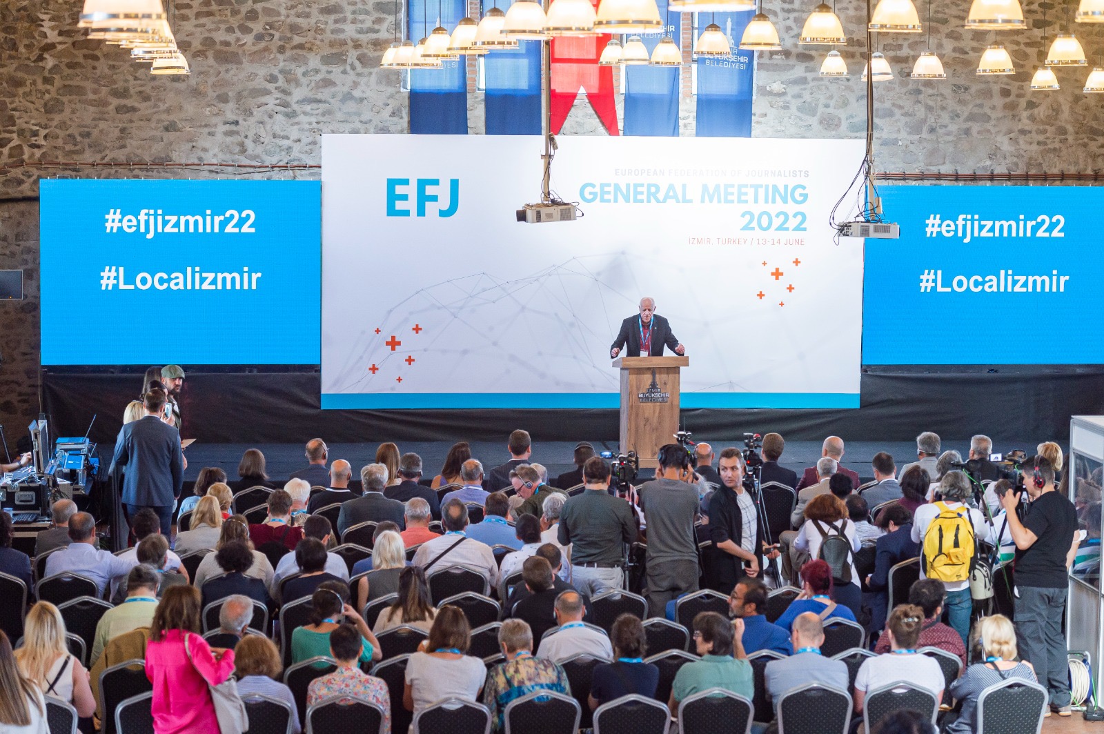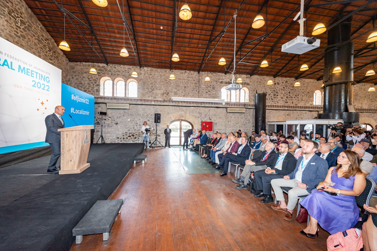 İzmir Büyükşehir Belediyesi’nin ev sahipliğinde, Türkiye Gazeteciler Sendikası (TGS) ve İzmir Gazeteciler Cemiyeti (İGC) tarafından Tarihi Havagazı Fabrikası'nda düzenlenen Uluslararası Yerel Medya Zirvesi, Avrupa Gazeteciler Federasyonu (EFJ) Genel Kurulu ile başladı. Avrupa’nın 45 ülkesinden 110 gazetecinin katıldığı zirve kapsamındaki genel kurulun açılış törenine ev sahibi İzmir Büyükşehir Belediye Başkanı Tunç Soyer’in yanı sıra Cumhuriyet Halk Partisi İzmir Milletvekili Murat Bakan, Avrupa Birliği Türkiye Delegasyonu Başkanı Büyükelçi Nikolaus Meyer-Landrut, Türkiye Gazeteciler Sendikası (TGS) Genel Başkanı Gökhan Durmuş, Avrupa Gazeteciler Federasyonu Başkanı Mogens Blicher Bjerrega§rd, İzmir Gazeteciler Cemiyeti (İGC) Başkanı Dilek Gappi, ulusal, uluslararası ve yerel basının temsilcileri, akademisyenler ve çok sayıda sivil toplum kuruluşu temsilcileri katıldı.