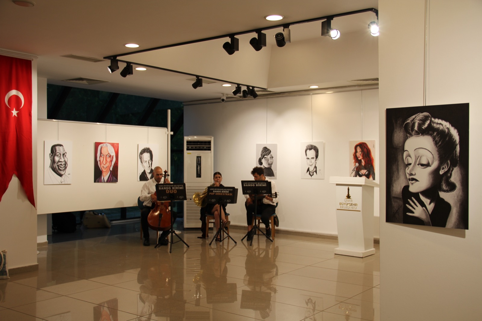 Menekşe Çam’ın sinema ve müzik dünyasından yerli ve yabancı ünlülerin portre karikatürlerini kendine özgü yorumla ele aldığı 25 eseri Samanyolu Portre Karikatür Sergisi ise İzmir Sanat`ta açıldı.