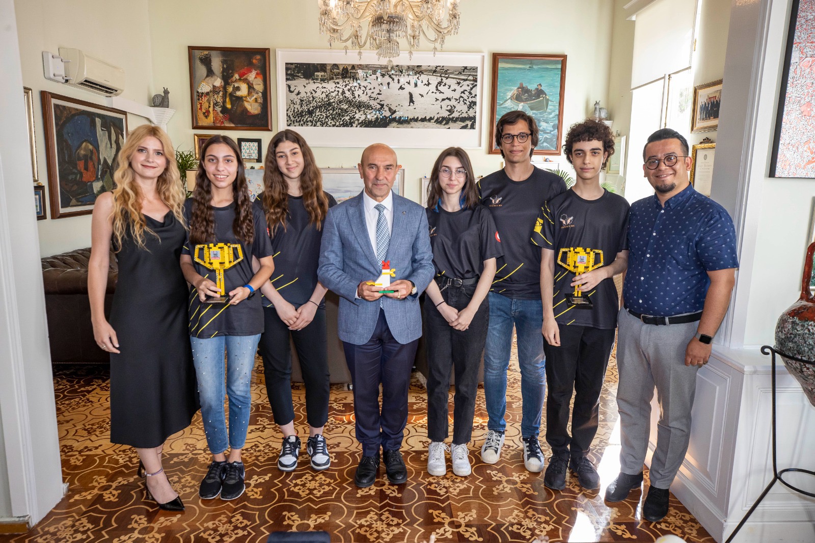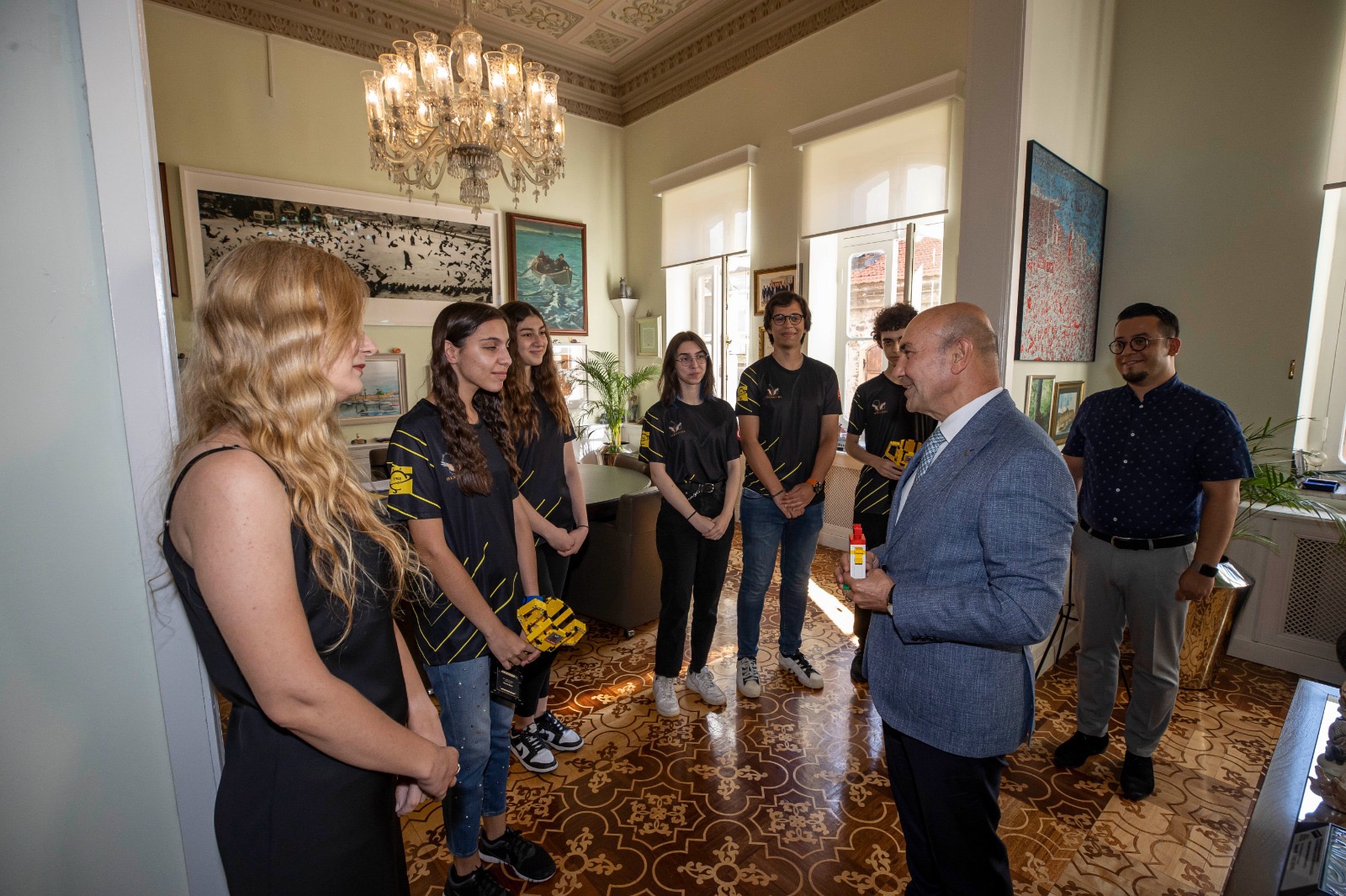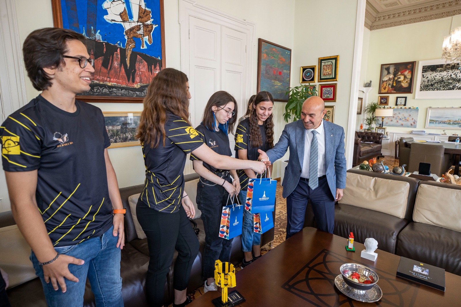 İzmir Büyükşehir Belediyesi'nin sponsor olduğu FIRST Robotics Competition turnuvasında elde ettiği başarının ardından Avustralya'da dünya şampiyonluğuna ulaşan İzmir Özel Çakabey Lisesi öğrencileri, Başkan Soyer'i ziyaret etti. Şampiyonlar verdiği destek nedeniyle İzmir Büyükşehir Belediye Başkanı Tunç Soyer'e teşekkür etti.