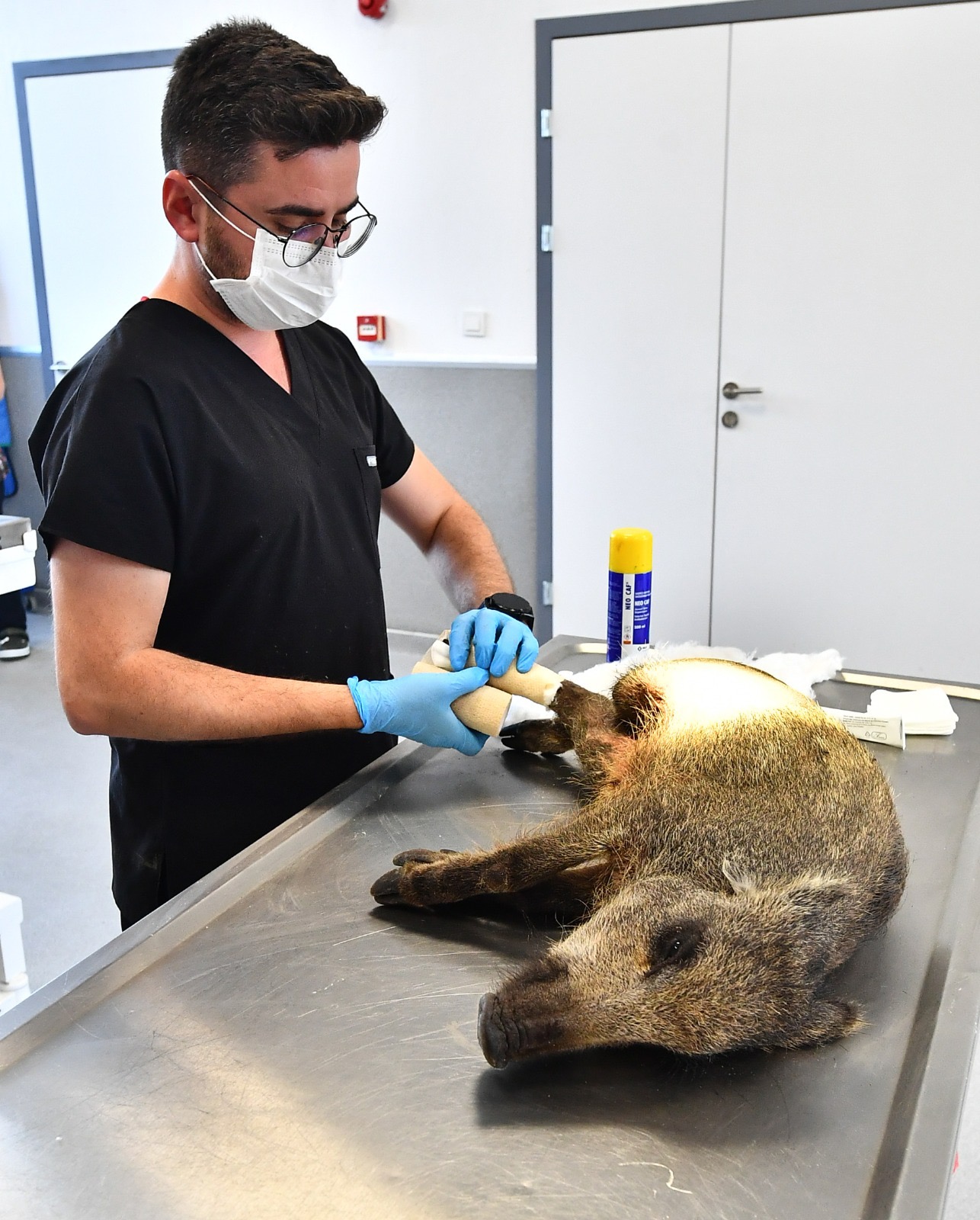 Veteriner Hekim Devran Aydın da yavru domuzun kalçasında kırık olduğunu belirlediklerini söyledi. Uyluk kemiğinin de kalça ile bağlantısının koptuğunu ifade eden Aydın, “Uyguladığımız tedavi ile bacağın kalça ile olan bağlantısını yeniden sağladık. Sürtünmeden dolayı yaraları var. Biz uygun cerrahi müdahaleleri yaptık. İyileşmesi için gözetimimiz altında tedavisi sürüyor” diye konuştu.