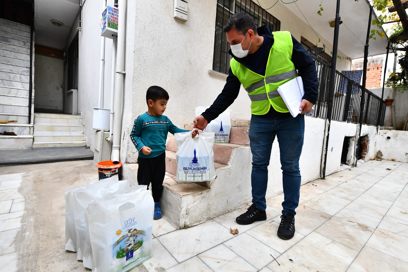 İzmir Büyükşehir Belediyesi altı üretici kooperatifinden satın aldığı sütü 58 farklı ekiple 619 mahallede kapı kapı dolaşarak dağıtıyor. Süt dağıtım personeli Deniz Engin Afacan, “Çocuklar artık bizi tanıyorlar. Bir bakıma biz büyüttük onları, yıllarca sütlerini biz temin ettik. Büyüttüğümüz çocukları görünce daha da mutlu oluyoruz. Üstelik onların kardeşlerine de süt veriyoruz. Bu projede olmaktan çok mutluyum. Çocuklara süt verirken kendi çocuklarıma süt vermişim gibi mutlu oluyorum” dedi.
