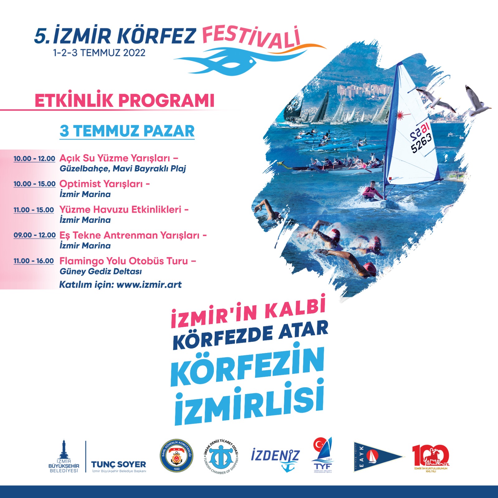 İzmir Büyükşehir Belediye Başkanı Tunç Soyer’in “spor kenti İzmir” vizyonu doğrultusunda 1-3 Temmuz tarihleri arasında İzmir Körfez Festivali’nin beşincisi düzenleniyor. İzmir Körfezi üç gün boyunca optimist, kano, eş tekne antrenman yarışları, yüzme etkinlikleri ile açık su yüzme yarışlarına sahne olmaya hazırlanıyor.