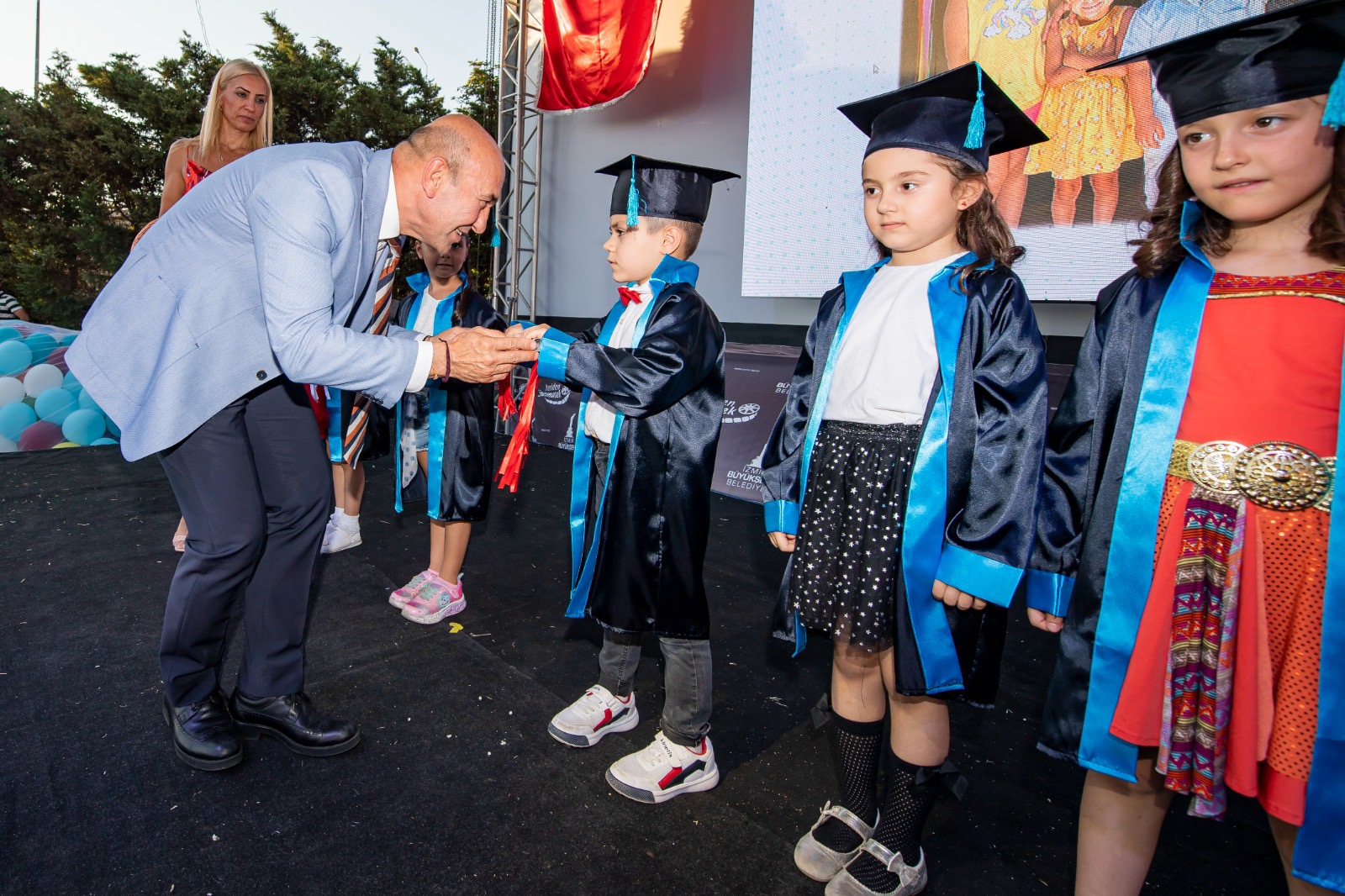 İzmir Büyükşehir Belediye Başkanı Tunç Soyer, İZELMAN Anaokulları’nın mezuniyet törenine katıldı. Başkan Soyer, “Devlet babaysa belediye ana olmalıdır. Bu yüzden anaokullarımız İzmir Büyükşehir Belediyesi’nin en değerli varlıkları” dedi. Soyer, müfredata doğa okuryazarlığı dersinin ekleneceğini de söyledi.