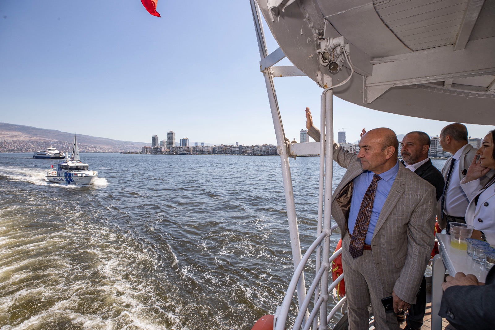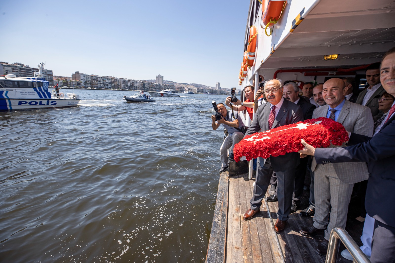 İzmir Büyükşehir Belediye Başkanı Tunç Soyer 1 Temmuz Denizcilik ve Kabotaj Bayramı etkinlikleri kapsamında deniz şehitleri anısına düzenlenen Körfez’e çelenk atma törenine katıldı.
