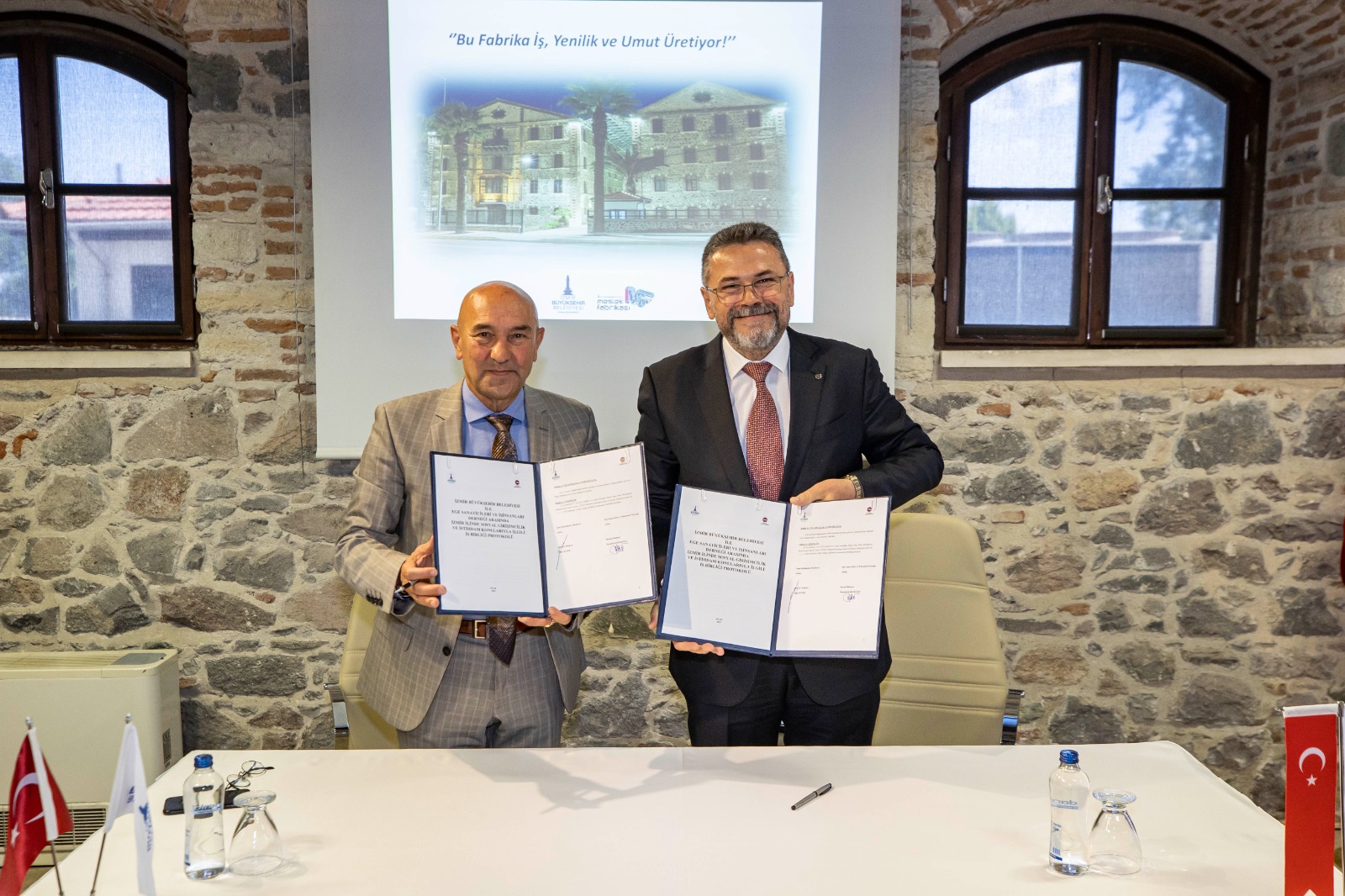 İzmir Büyükşehir Belediye Başkanı Tunç Soyer’in kentte refahı büyütme ve adil paylaştırma hedefi doğrultusunda İzmir’de işgücü potansiyelini attırmak ve kalifiye eleman yetiştirmek üzere hizmet veren İzmir Büyükşehir Belediyesi Meslek Fabrikası, yeni bir protokole imza attı. İzmir Büyükşehir Belediye Başkanı Tunç Soyer ve Ege Sanayicileri ve İş İnsanları Derneği (ESİAD) Yönetim Kurulu Başkanı Mustafa Karabağlı arasında imzalanan protokolle Meslek Fabrikası’ndan mezun olan kursiyerlere iş fırsatı yaratılacak. Protokol imza törenine İzmir Büyükşehir Belediyesi Genel Sekreter Yardımcısı Ertuğrul Tugay, İzmir Büyükşehir Belediyesi Meclis Üyesi Ali Emrah Karamustafaoğlu ile yetkililer katıldı.