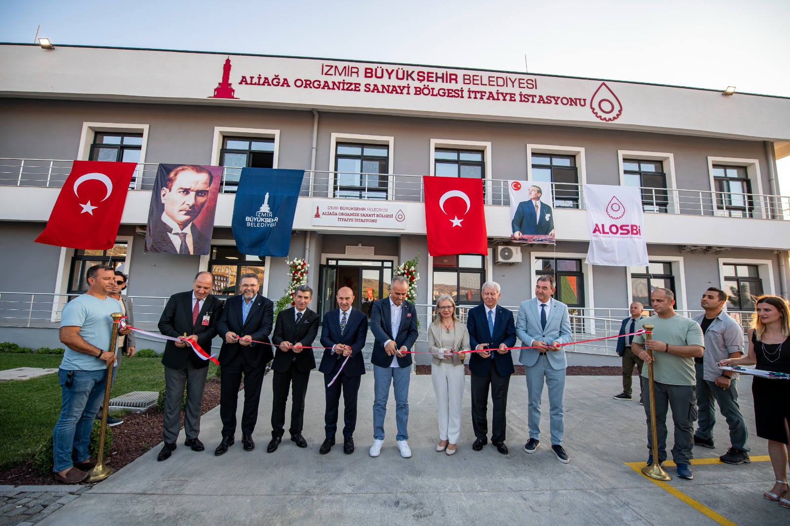 İzmir Büyükşehir Belediyesi sanayi bölgelerindeki yangın olasılığına karşı çalışmalarını sürdürüyor. İzmir Büyükşehir Belediye Başkanı Tunç Soyer, Aliağa Organize Sanayi Bölgesi (ALOSBİ) İtfaiye Merkezi’nin açılışını yaptı. Açılışa Aliağa Organize Sanayi Bölgesi Yönetim Kurulu Başkanı Haluk Tezcan, Ödemiş Belediye Başkanı Mehmet Eriş, İzmir Büyükşehir Belediyesi Genel Sekreter Yardımcısı Şükran Nurlu, İzmir Büyükşehir Belediyesi İtfaiye Dairesi Başkanı İsmail Derse, Aliağa İlçe Emniyet Müdürü Mehmet Balıkçıoğlu, siyasi partilerin ve sivil toplum kuruluşlarının temsilcileri, meclis üyeleri, itfaiye personeli ve sanayiciler katıldı.