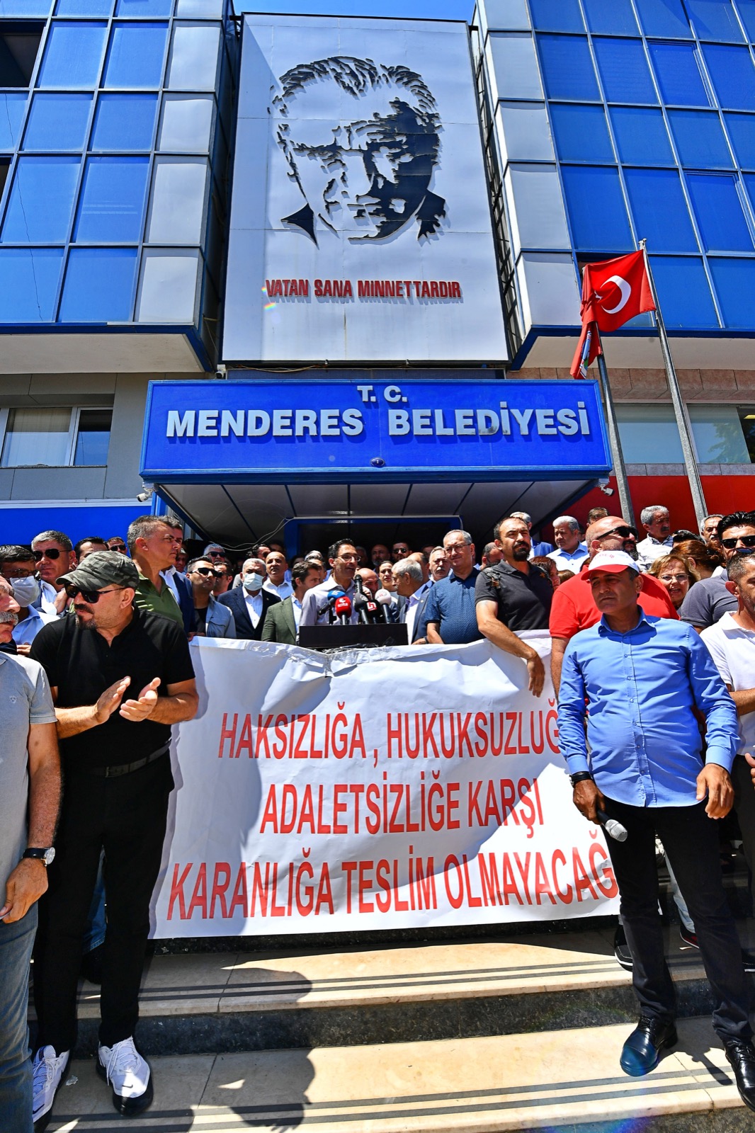 Menderes Belediye Başkanlığı görevinden uzaklaştırılan Mustafa Kayalar ise kararın siyasi çıkarlar uğruna alındığını belirtti. Yargı sürecine dair bilgiler veren Kayalar “Bu süreçte kimse ümitsizliğe kapılmasın. Başından beri söylediğim gibi veremeyeceğimiz hiçbir hesabımız yok. Başımız dik alnımız ak. Biliyorum ki bu günler geçecek. Bizler de sizlere ilk günkü heyecanımızla hizmet etmeye devam edeceğiz” şeklinde konuştu.