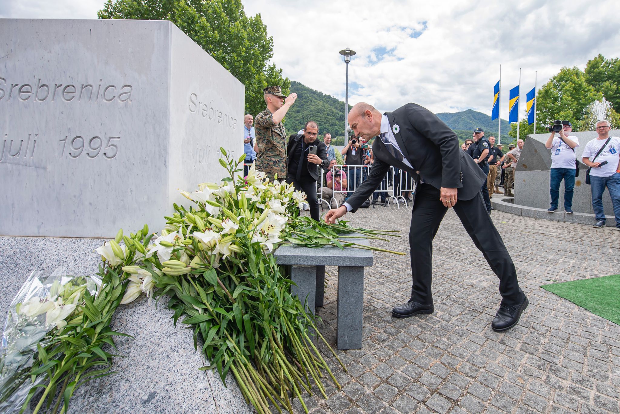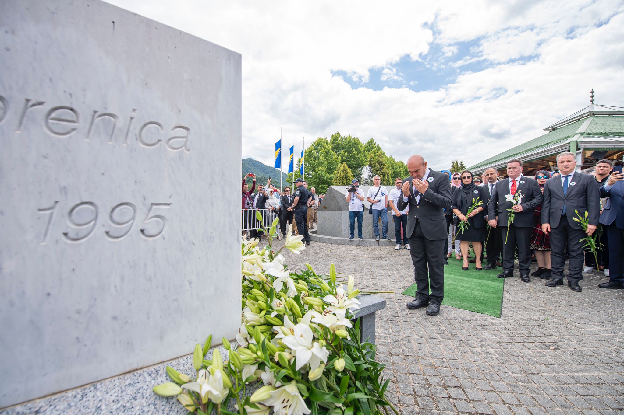 Resmi törenin ardından Potoçari Anıt Mezarlığı'na geçerek Srebrenitsa anıtına beyaz zambak bırakan Soyer, soykırımda hayatını kaybedenler için dua ederek cenaze törenine katıldı. Törende, 27 yıl önce katledilmesine karşın kimliği bu yıl tespit edilen 50 kişi için cenaze namazı kılındı. Cenaze namazının ardından isimleri okunan 50 kişi toprağa verildi.