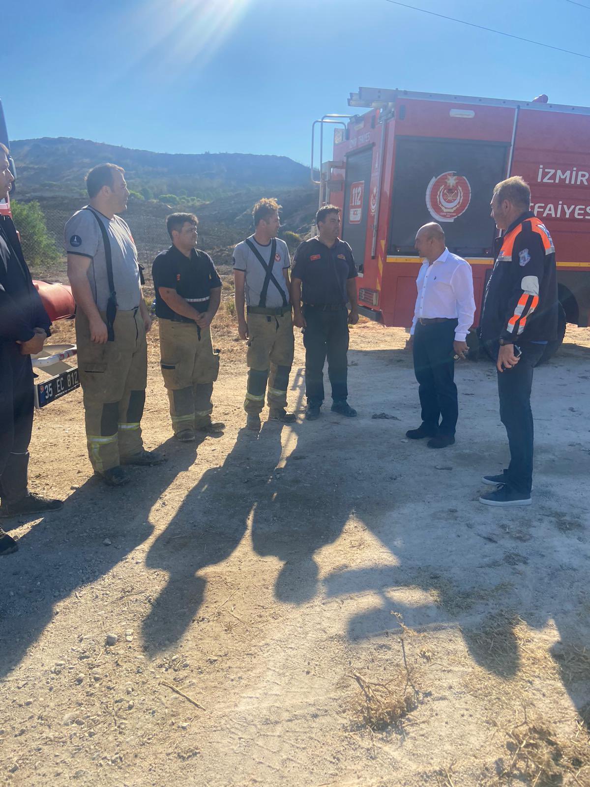Başkan Soyer'den alevlerle boğuşan itfaiyecilere moral desteği