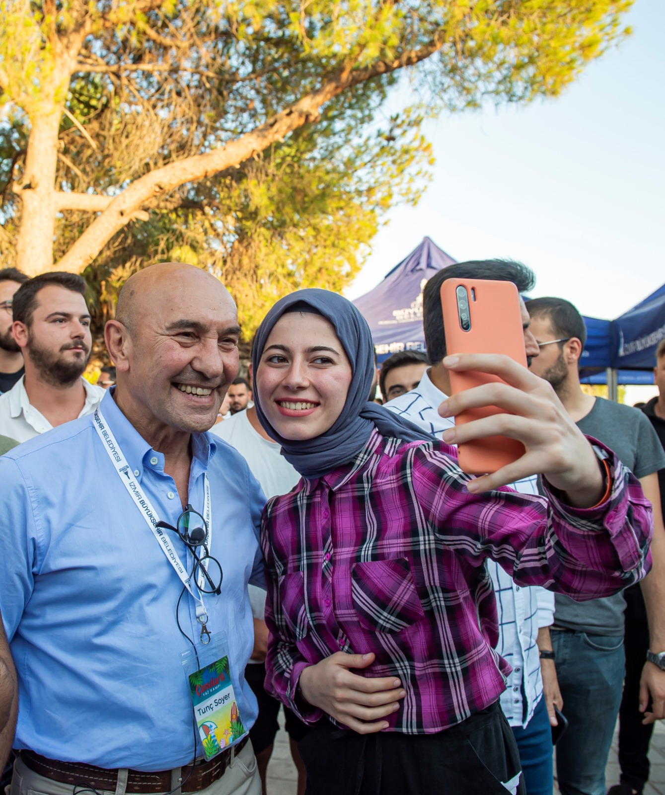 Türkiye’de son dönemlerde gençlerin umudunu kaybederek yurt dışında yaşamayı tercih etmelerini değerlendiren Başkan Soyer, “Maalesef çok büyük bir oranda gençlik geleceğini dışarıda arıyor. Enflasyon rakamları, hayat pahalılığı rakamları var, hepsinden daha vahimi, anlamlısı işte bu oran. Yüzde kaçı geleceğini dışarıda arıyor? Baktığın zaman yüzde 60-70’ler. Gençlerin bu memleketten umudunu kesmesi kadar vahim bir şey olamaz. Bu, başımıza gelebilecek en büyük felakettir. O yüzden bu memlekete olan aidiyetlerini, bağlarını güçlendirmemiz lazım. Bu memleketi sevmelerini, onun için mücadele etmelerini, onun için ellerini taşın altına koymalarını sağlamamız lazım. Bir yandan da onların burada huzurlu, güler yüzlü hayat kurmalarına imkan yaratmaya çalışmamız lazım. Olanca gücümüzle buna kafa yoruyoruz. Çünkü bu bizim kabul edebileceğimiz, rıza gösterebileceğimiz bir şey değil. Bu gençler bu memleketi değiştirme potansiyeline sahip. Zekasıyla, vicdanıyla, aklıyla bu memleketi çok daha güzel bir yere taşıyacak gençler” dedi.