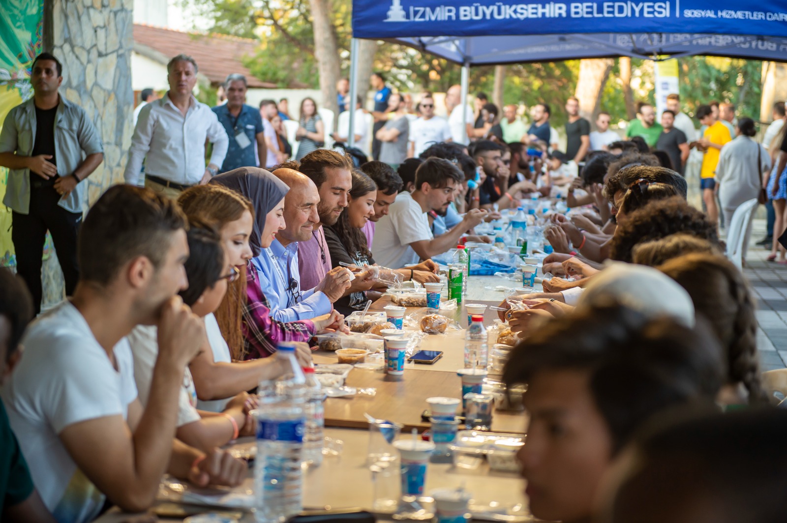 Dikili Belediye Başkanı Adil Kırgöz, İzmir Büyükşehir Belediyesi Genel Sekreter Yardımcısı Ertuğrul Tugay, İZBETON Genel Müdürü Heval Savaş Kaya, İzmir Büyükşehir Belediyesi Sosyal Projeler Dairesi Başkanı Anıl Kaçar’ın da yer aldığı programda gençlerle yemekte bir araya gelen İzmir Büyükşehir Belediye Başkanı Tunç Soyer, daha sonra kamp alanını gezdi. Başkan Soyer ayrıca gençlerle sohbet etti, talep ve önerileri dinledi.