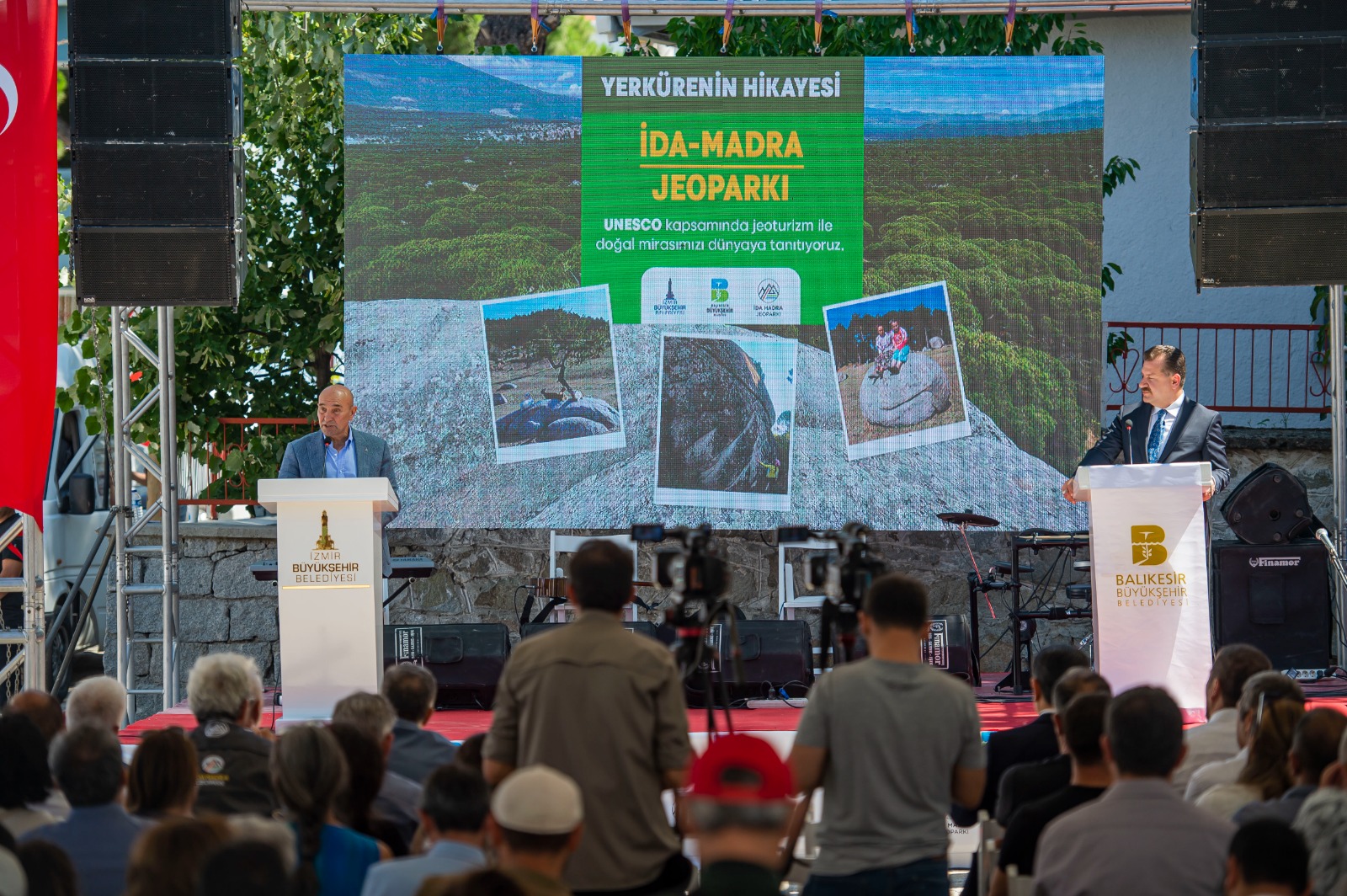 Onlarca uzmanın ve belediye ekiplerinin ektiği tohumların meyvelerini bir bir aldıklarını ifade eden Başkan Soyer, “Bugün, İda–Madra dağlarının UNESCO eliyle dünya jeoparklar ağına katılmasının heyecanını yaşıyoruz. Geldiğimiz bu noktanın, bu dağlarda doğayla uyumlu bir kırsal ekonominin oluşması için büyük fırsatlar yarattığını çok iyi biliyorum. Bu fırsatları Balıkesir Büyükşehir Belediyesi ile birlikte geliştirmekten ve yürütmekten kıvanç ve heyecan duyuyoruz. İnanıyorum ki bu projeyle birlikte bölgede yaşayan insanlarımız yaşadıkları yerlerden daha fazla gurur duyacak, buranın yeryüzü mirasına sahip çıkacak ve dahası, doğdukları yerde doyacaklar” şeklinde konuştu.