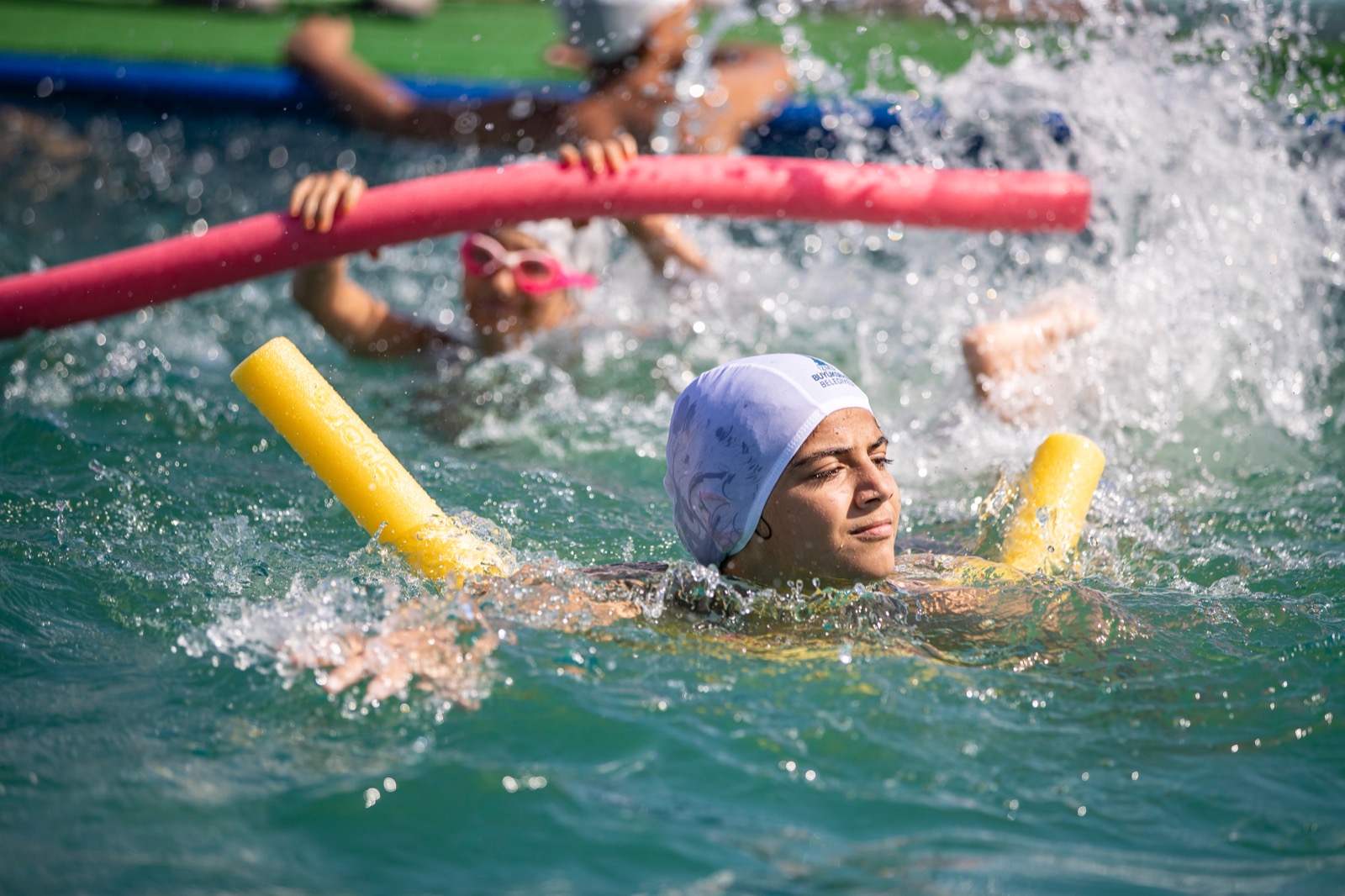 Başkan Tunç Soyer, Kadifekale’deki portatif havuza da giderek çocuklar ve eğitmenlerle sohbet etti. Portatif havuzlar Başkan Tunç Soyer’in sporu kentin tamamına yayma hedefi doğrultusunda dezavantajlı mahallelerde geçen yıl kurulmuş ve bu yıl sayısı 3’ten 7’ye çıkartılmıştı. Konak’ta Pazaryeri ve Kadifekale, Bornova’da Meriç, Çiğli’de Yakakent, Beydağ’da Leylak, Menemen’de İsmet İnönü ve Kiraz’da Yeni mahallelerindeki havuzlarda eğitimler sürüyor. 7 portatif havuzda 9 bin çocuğa yüzme eğitimi verilecek.