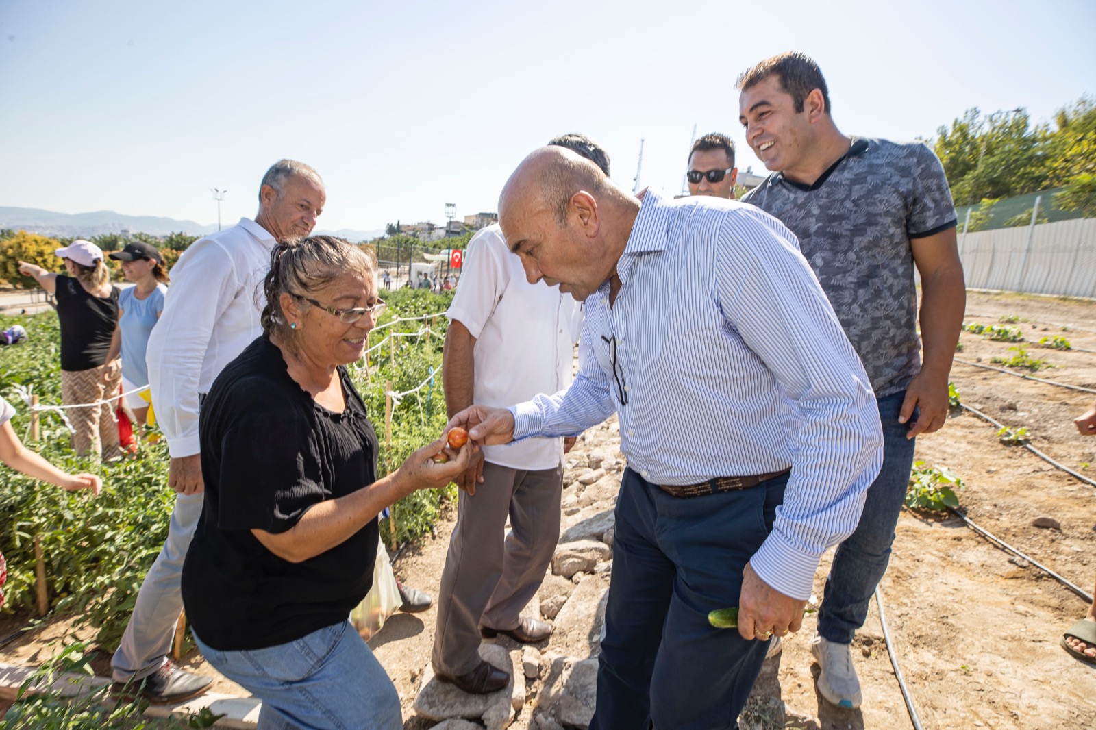 Başkan Soyer’in doğayla uyumlu kent anlayışı doğrultusunda ilki Kadifekale’de kurulan Mahalle Bostanı da ziyaret programındaydı. Domates, biber, patlıcan, bamya, salatalık ve kabak olmak üzere 2 bin 196 fidenin dikildiği ve 54 parselde 51 kadın üreticinin olduğu bostandan elde edilen ilk ürünler Başkan Soyer’e ikram edildi. Soyer, Ayşen Tuncay’ın bostandan elde ettiği biber ve patlıcandan yaptığı dolmayı da tattı.
