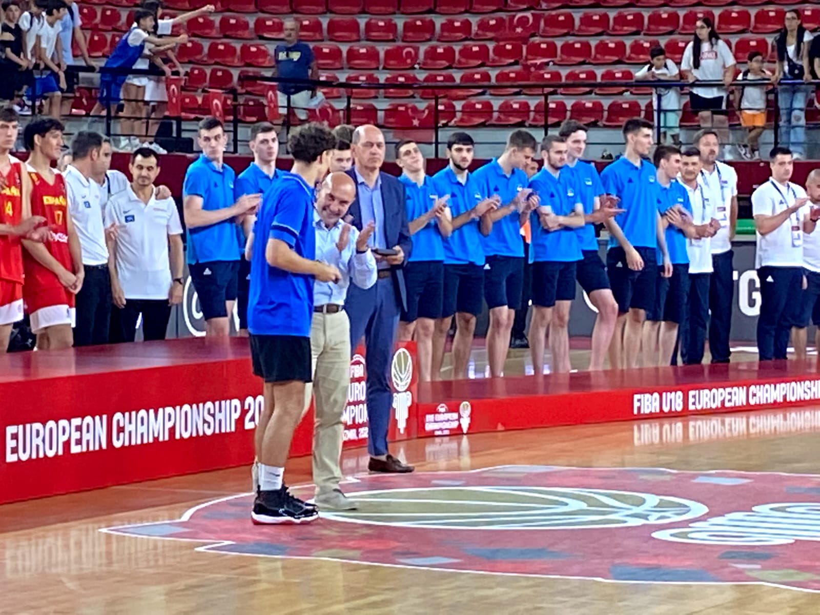 Basketbol Federasyonu Başkanı Hidayet Türkoğlu ise “Şimdiye kadar ev sahibi olduğumuz bütün uluslararası organizasyonlarda olduğu gibi FIBA 18 Yaş Altı Avrupa Şampiyonası’nı da başarıyla düzenlemenin gururunu ve mutluluğunu yaşıyoruz. Bu güzel organizasyonun kusursuz şekilde tamamlanması için canla başla çalışan değerli ekip arkadaşlarıma, tribünleri doldurarak basketbola duydukları sevgiyi bir kez daha gösteren kıymetli İzmirlilere, Gençlik ve Spor Bakanlığı’na, İzmir Valiliği’ne, İzmir Büyükşehir Belediyesi’ne, Karşıyaka ve Bornova belediyelerine bir kez daha teşekkür ederim" dedi.