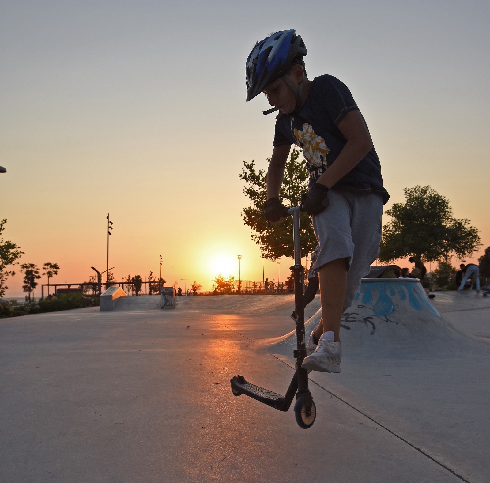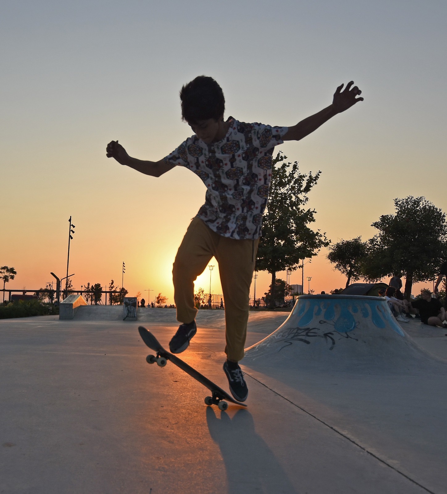 İzmir Büyükşehir Belediyesi’nin Bostanlı Rekreasyon Alanı’nda yaptığı paten pisti, sporu ve heyecanı seven gençlerin vazgeçemediği mekanlardan biri haline geldi. Gençlerin kaykay ve bisikletleriyle akrobatik hareketler sergilediği pist fotoğraf meraklıları için de özellikle gün batımı saatlerinde birbirinden güzel kareler yakalama fırsatı sunuyor.