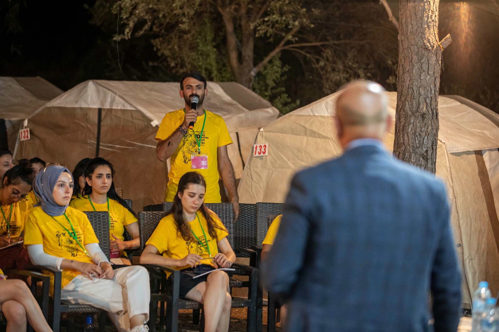 İzmir Büyükşehir Belediye Başkanı Tunç Soyer geleceğin şehir ve bölge plancılarıyla yaz kampında bir araya geldi. İzmir’in gündemindeki çevre mücadelesinden yatırım, proje ve kentin gelecek vizyonuna kadar tüm soruları tek tek yanıtlayan Başkan Soyer, gençlere siyaset yapma çağrısında bulundu. Soyer, “Ben size inanıyorum. Bu memlekette şikayet ettiğimiz ne varsa bunları değiştirme gücünün sizde olduğunu biliyorum” dedi.