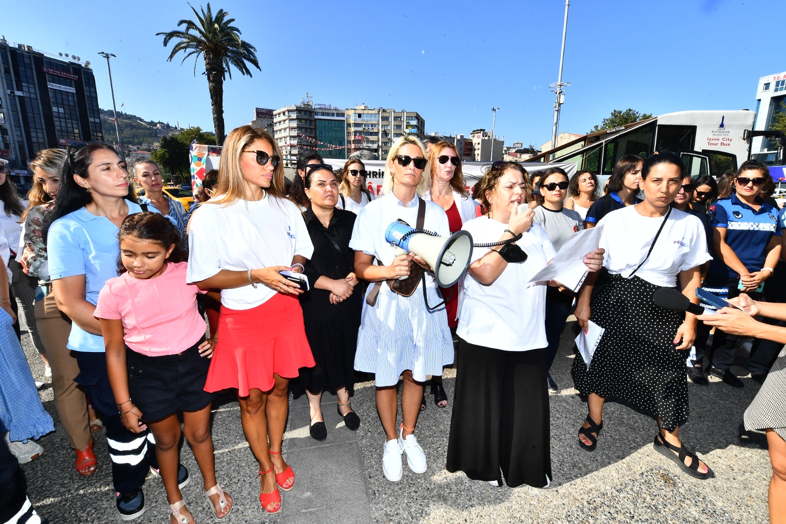 İzmir Büyükşehir Belediyesi’nin kadın çalışanları için oluşturduğu (PERGEL) projesi üyeleri, kadına yönelik şiddet ve kadın cinayetlerine tepki göstermek için bir araya geldi. PERGEL üyesi avukat Özlem Durmaz, cinsiyete dayalı şiddetin her türünün ağır bir insan hakkı ihlali olduğunu belirterek, sonuna kadar mücadele edeceklerini söyledi.