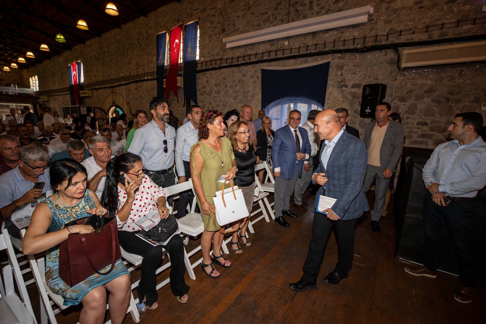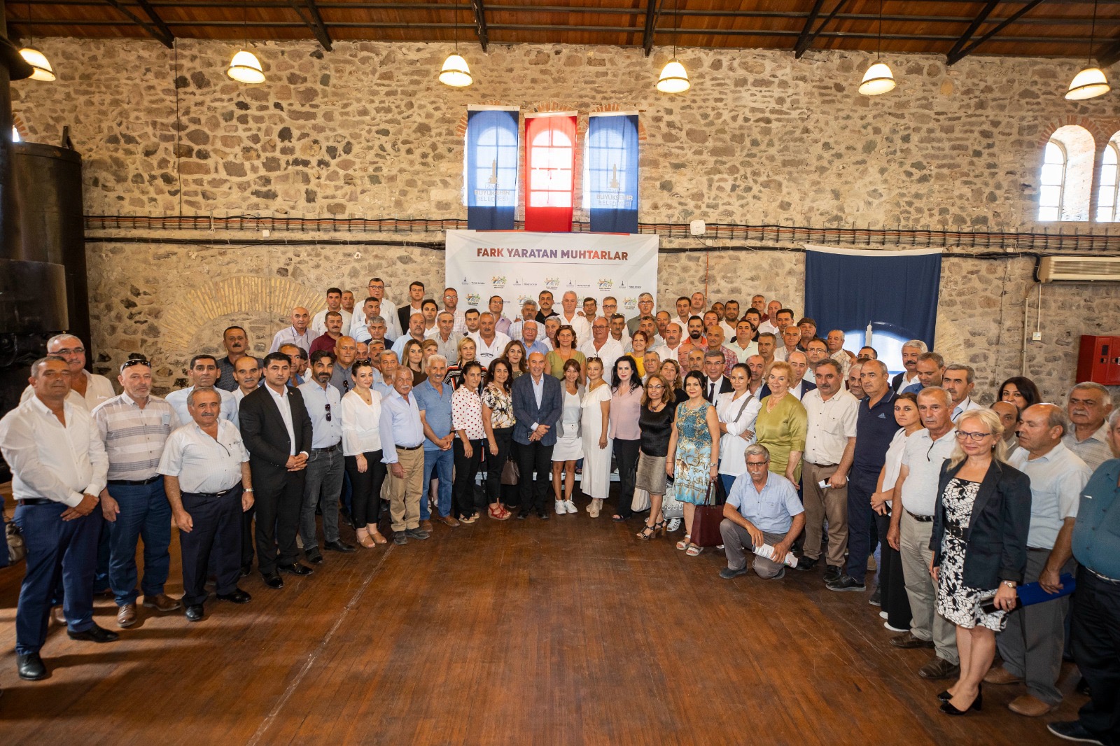Başkan Soyer, dünyada olup bitenler karşısında susmayacaklarını söyleyerek “Biz bunu yapmadık, yapmıyoruz, yapmayacağız. İşin kolayına kaçmak yerine, bir fark yaratmak istiyoruz. İşte bu yolda en büyük çözüm ortağımız, siz muhtarlarımızsınız. Çünkü muhtarlık makamı demokrasinin, uyum içinde yaşamanın özü, çekirdeğidir. Mahallelinin derdi nedir, evlatlarımız hangi evde yatağa aç giriyor, en acil çözülmesi gereken sorun hangisidir? Bunları en iyi muhtarlarımız bilir. Bu nedenle üç yıllık görev süremde 30 ilçemizin bin 293 muhtarı ile en az bir defa, çoğuyla da defalarca yüz yüze görüştüm. Mahallelerinizin dertlerini çözmek için el birliğiyle çalıştık. Bugünse sizlerle olan yol arkadaşlığımızı bir adım öteye götürmek için bir aradayız. Diliyoruz ki, muhtarlarımız daha çok fark yaratsın. İzmir’in mahallelerini yeniden daha uyumlu, içten, neşeli ve bereketli bir hayatla buluşturmak için fark yaratan muhtarlar hareketini başlatıyoruz” şeklinde konuştu.