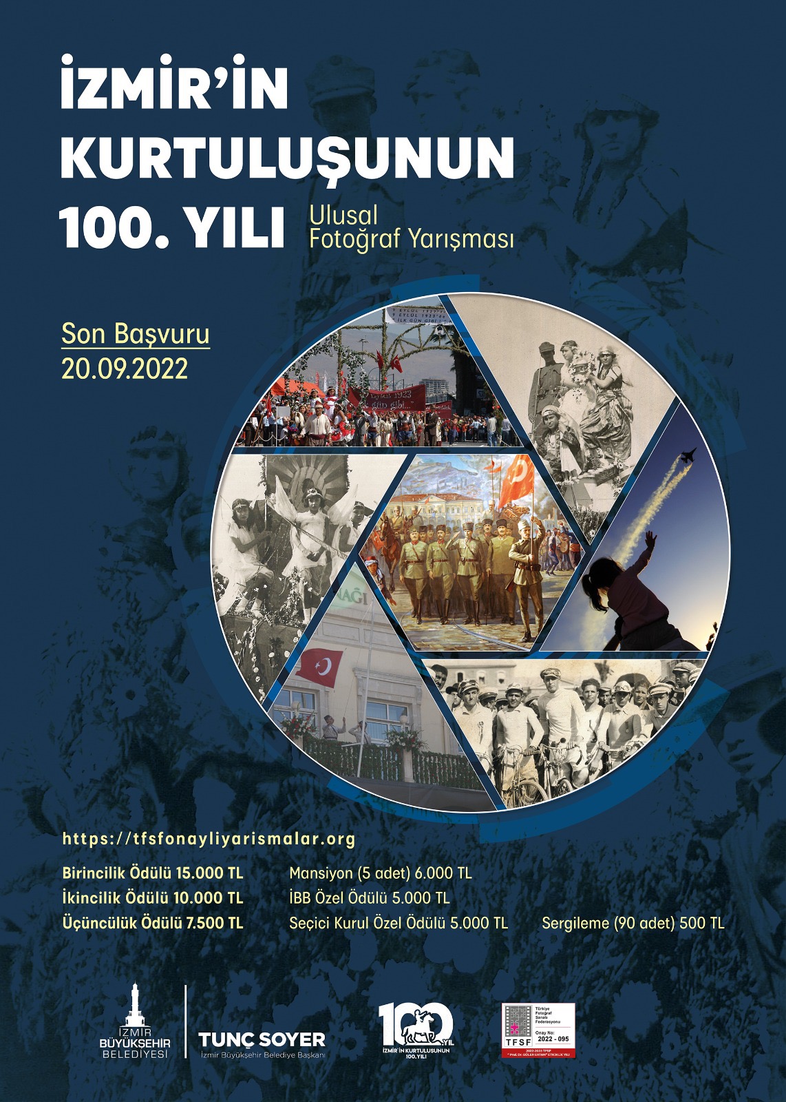 İzmir Büyükşehir Belediyesi “İzmir’in Kurtuluşunun 100. Yılı” konulu ulusal fotoğraf yarışması düzenliyor. Kent Tarihi ve Tanıtımı Dairesi Başkanlığı tarafından organize edilen yarışmada, fotoğraf sanatı aracılığı ile 9 Eylül’ün 100. yılında yapılacak etkinlik, tören ve kutlamaların belgelenmesi hedefleniyor. Yarışma aracılığıyla amatör ve profesyonel fotoğrafçıların bu anlamlı günde İzmir’de buluşması sağlanarak, kentin bu tarihi günlerine ait görsel bellek oluşturulması amaçlanıyor.