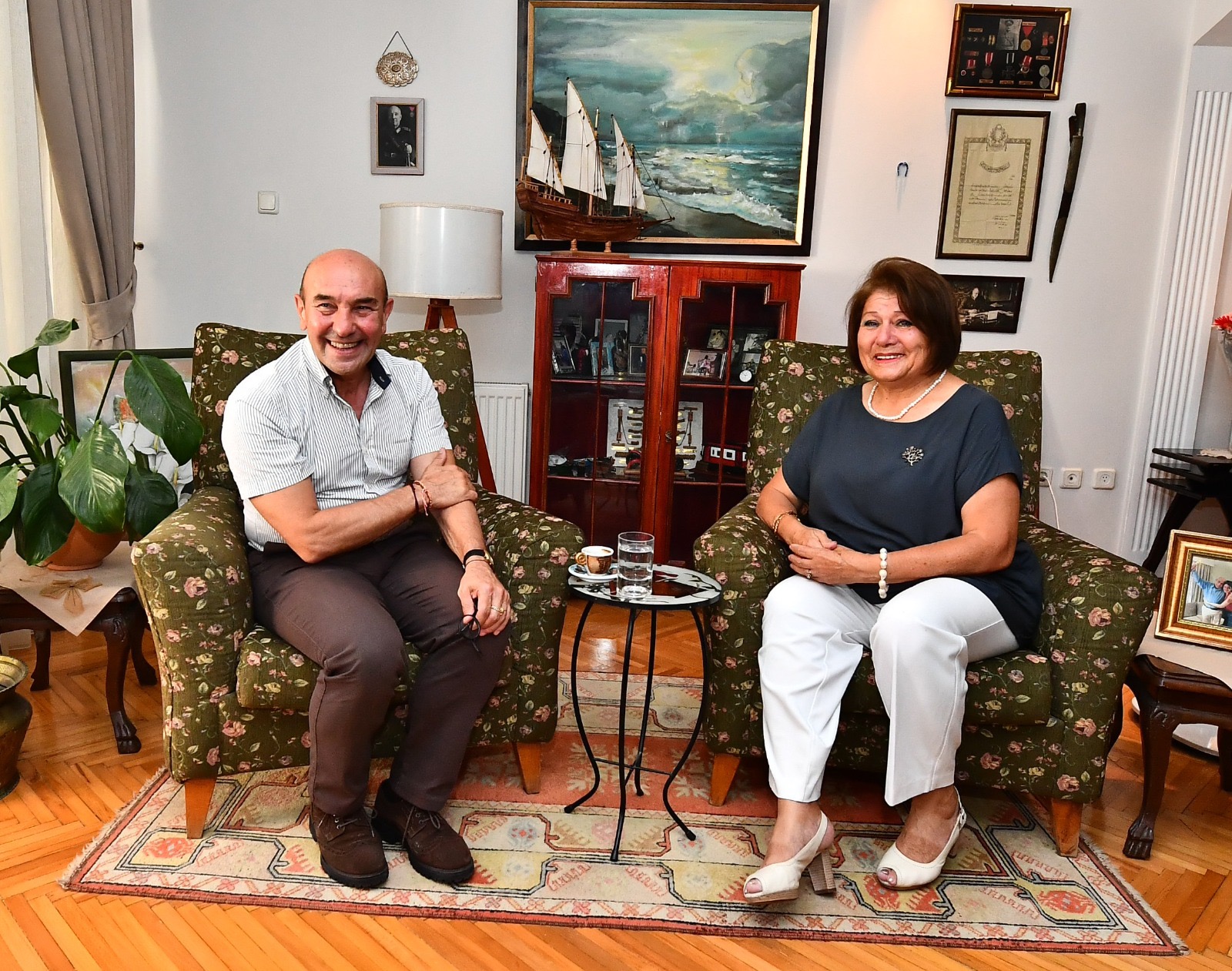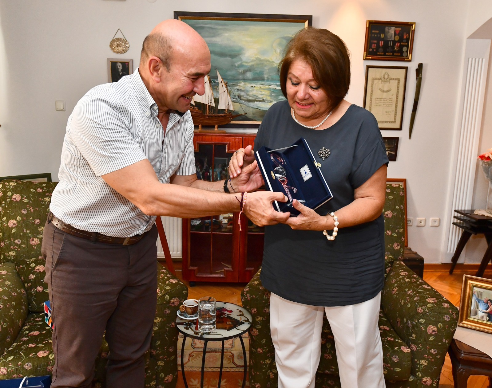 İzmir Büyükşehir Belediye Başkanı Tunç Soyer İzmir’in kurtuluşunun 100. yılı anısına kente kazandıracağı anı evi için bağış yapan ressam Ayla Erdur’u Karşıyaka'daki evinde ziyaret etti.