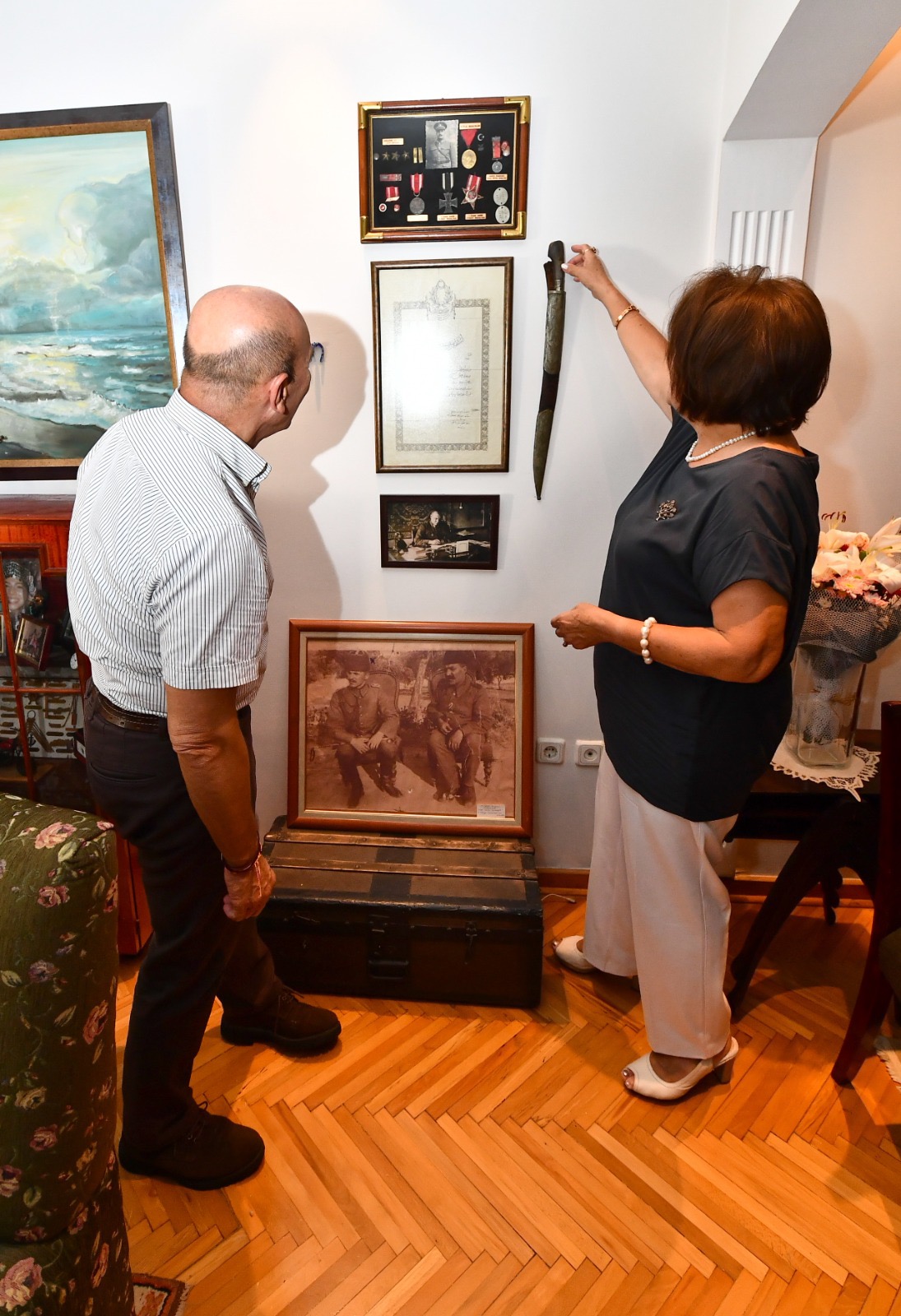 Birinci Dünya Savaşı ve Kurtuluş Savaşı komutanlarından manevi babası Albay Salih Lütfü Baykara’nın hatıra fotoğraflarını, istiklal madalyalarını, kılıcını, askeri palaskayı, apoleti, askeri kimliği, savaş notlarının bulunduğu metal muhafazalı not defterini Anı Evi’ne bağışlayan Erdur, Başkan Soyer’e eşyalarla ilgili bilgi verdi. Erdur, “Manevi babamdan bana en büyük miras anılarımız kaldı. Ben de yüzyıl anısına paha biçilemez hatıralarımı İzmir’e bağışlamayı doğru buldum. Sizi çok takdir ediyorum. Bu anıların kıymetini sizin bileceğinizi de biliyorum. Bizim atalarımıza vefa borcumuz var. Siz bunlar için önder oldunuz” diye konuştu.
