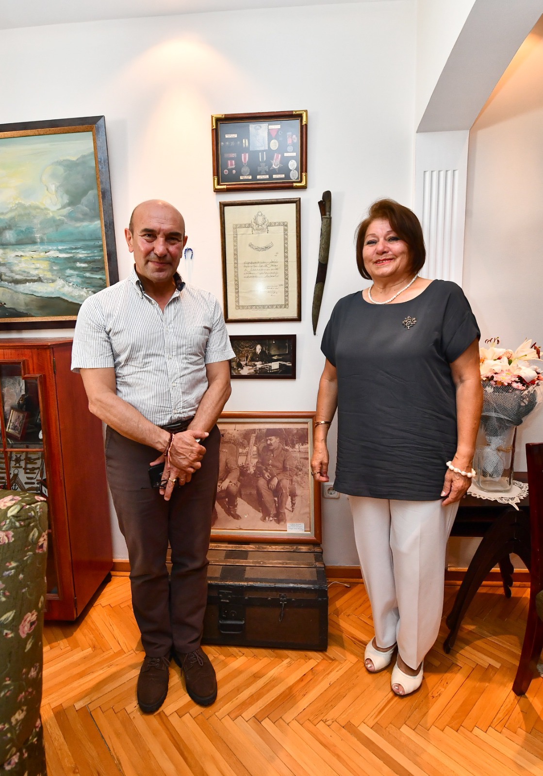 İzmir Büyükşehir Belediye Başkanı Tunç Soyer İzmir’in kurtuluşunun 100. yılı anısına kente kazandıracağı anı evine, manevi babasının Birinci Dünya Savaşı ve Kurtuluş Savaşı sırasında kullandığı eşyaları bağışlayan ressam Ayla Erdur’u ziyaret etti. Başkan Tunç Soyer, İzmirliler adına Erdur’a teşekkür ederek “Bu hafızayı birlikte yaşatacağız” dedi. 100. Yıl Anı Evi Yemişçizade Konağı’nda 13 Eylül’de açılacak.