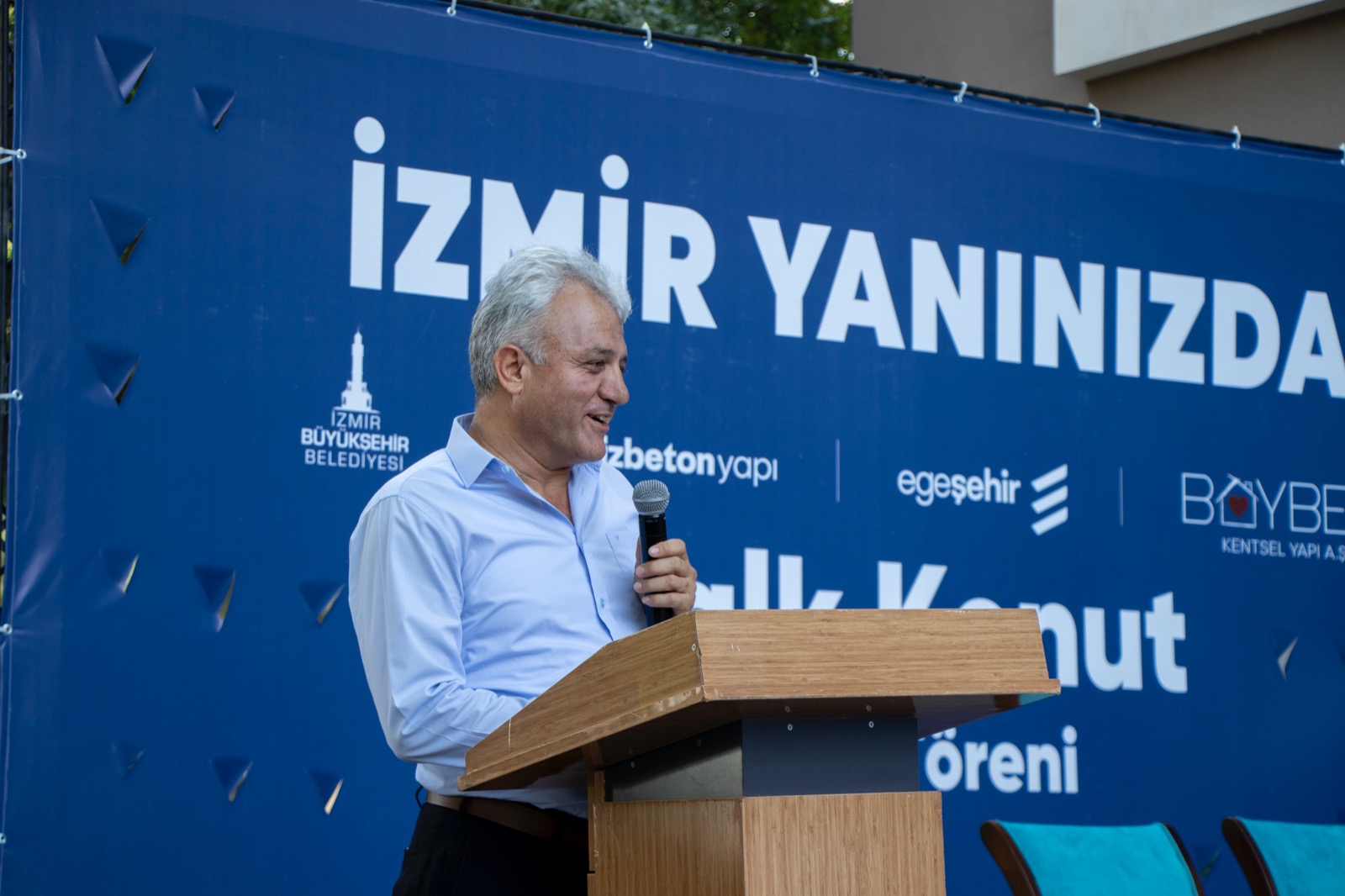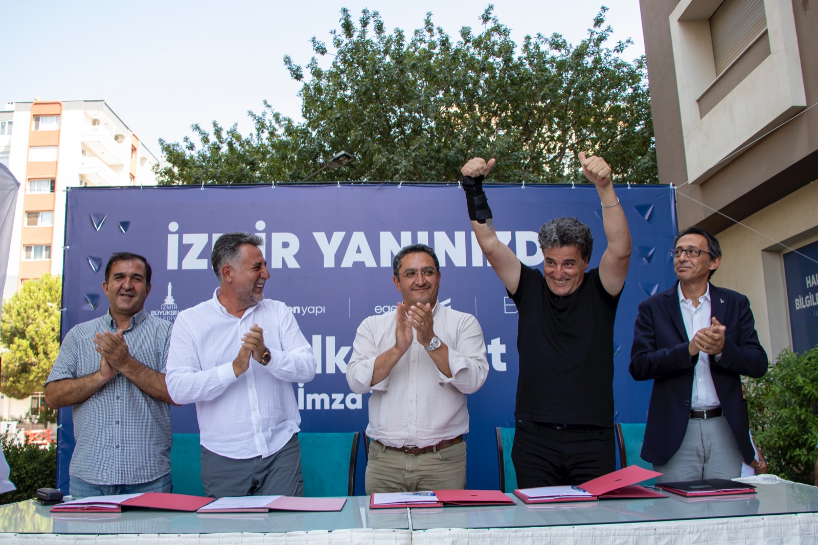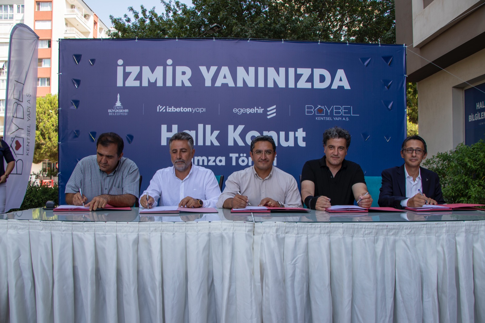 Bayraklı Manavkuyu Mahallesi’ndeki Halk Konut Bilgilendirme Ofisi’ndeki imza törenine Bayraklı Belediye Başkanı Serdar Sandal, İZBETON A.Ş. Genel Müdürü Heval Savaş Kaya, Egeşehir A.Ş. Yönetim Kurulu Başkanı Ali Onat Çetin ve Genel Müdürü Ekrem Tükenmez, BAYBEL Yönetim Kurulu Başkanı Berk Ulusal, İzmir Depremzedeleri Dayanışma Derneği (İZDEDA) Başkanı Haydar Özkan ve Halk Konut 2 Kooperatifi Başkanı Cüneyt Yılmaz ile depremzedeler katıldı.
