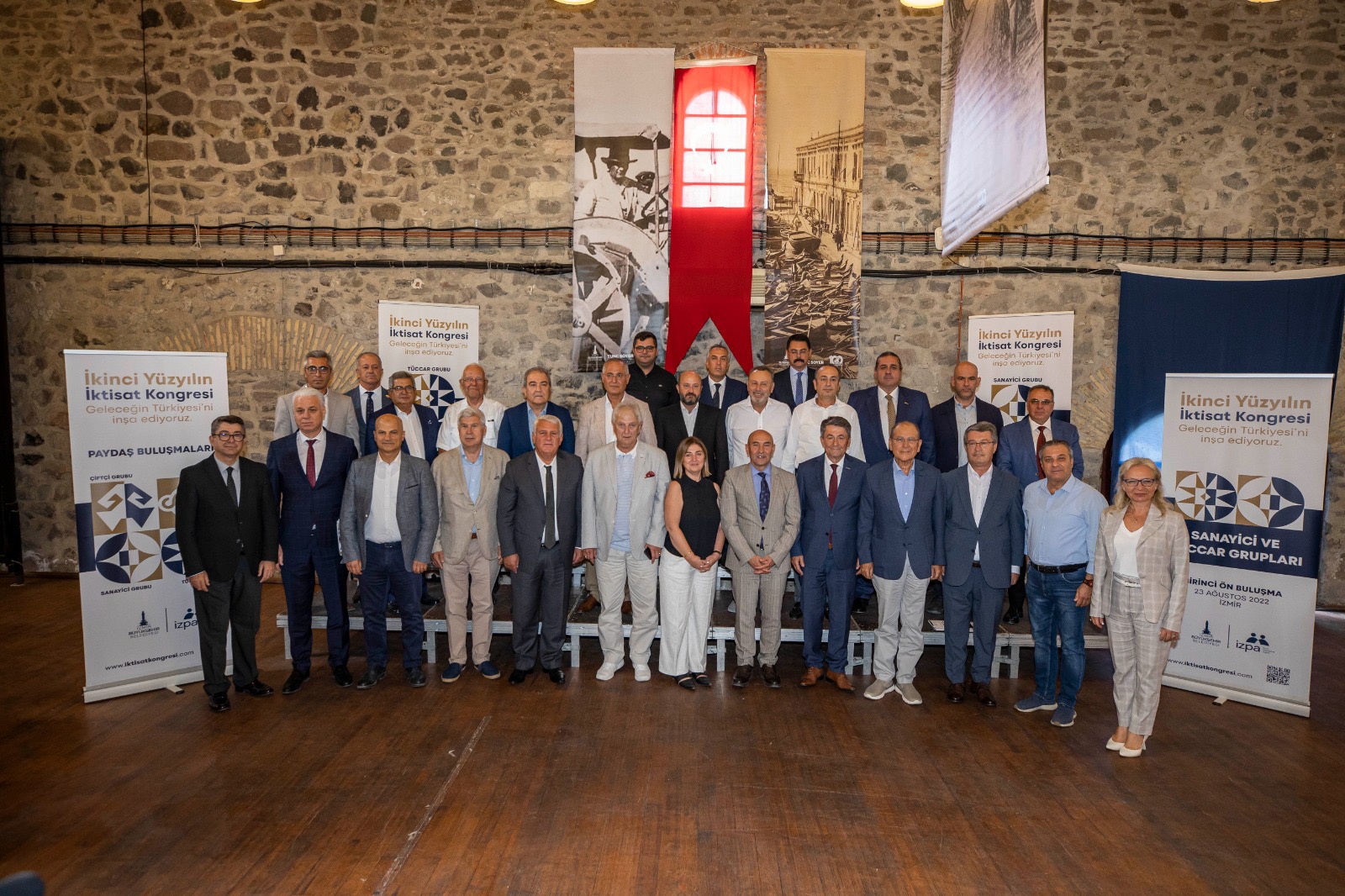 İzmir Büyükşehir Belediyesi tarafından Şubat 2023’te “Geleceğin Türkiyesi’ni inşa ediyoruz” sloganıyla 100 yıl aradan sonra yeniden İzmir’de düzenlenecek İkinci Yüzyılın İktisat Kongresi için yapılan paydaş buluşmaları sürüyor. İzmir Büyükşehir Belediye Başkanı Tunç Soyer çiftçi ve işçi temsilcilerinin ardından bu kez tüccar ve sanayicilerle bir araya geldi. Tarihi Havagazı Fabrikası'ndaki toplantının basına açık bölümünde konuşan İzmir Büyükşehir Belediye Başkanı Tunç Soyer, 7 bölgeden 71 katılımcı ile bir araya geldiklerini belirterek “Biz siyasetçilere, gelecekte Türkiye'yi yönetecek olanlara ilham alacakları, yararlanacakları bir kaynak ortaya çıkarma arzusundayız. Bugünün siyasi meseleleri ile değil geleceğin siyasi çözümleri ile ilgili bir kongre olsun istiyoruz” dedi.