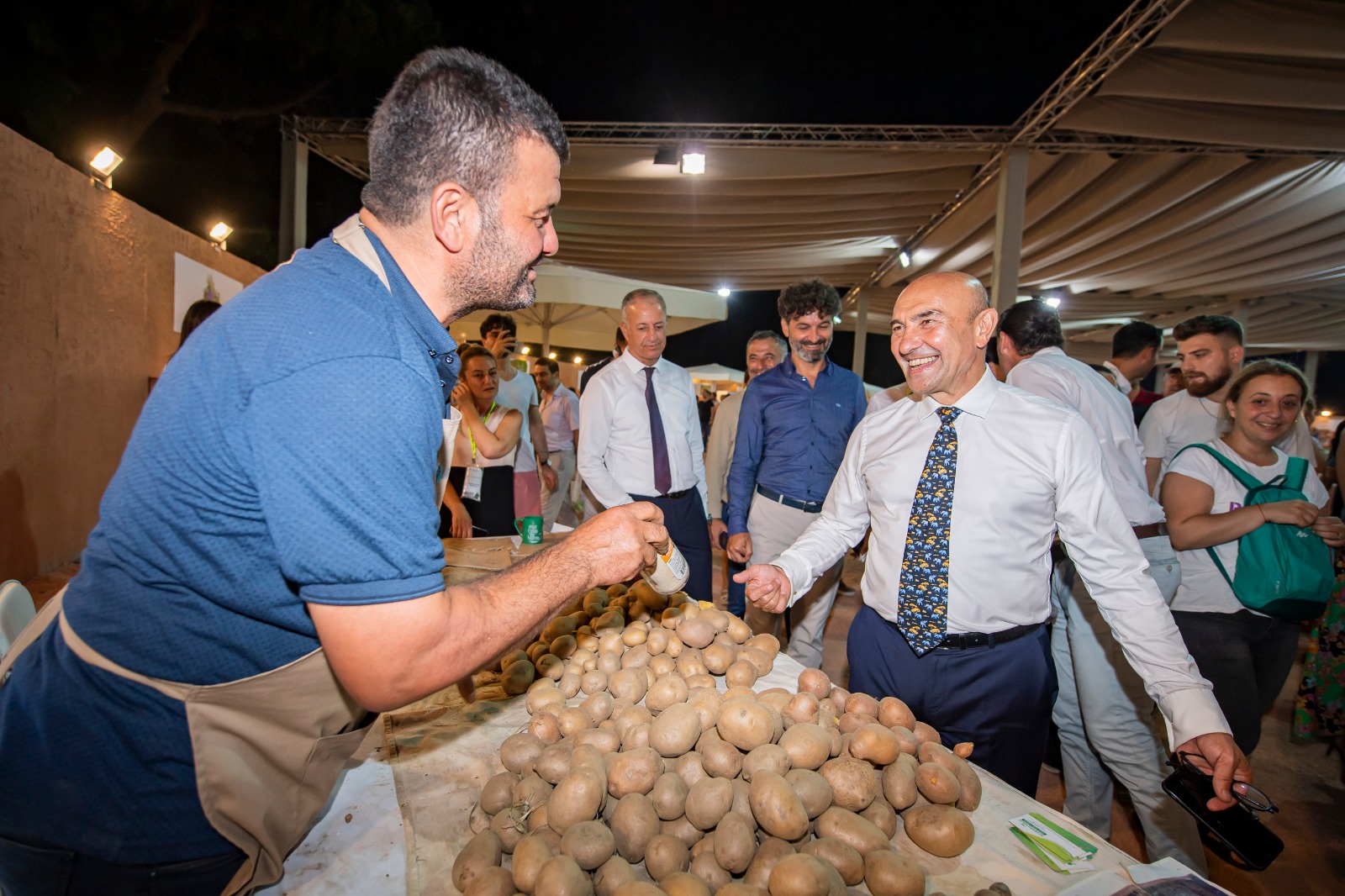 Bugüne kadar ilklerin yaşandığı İzmir Fuarı, sadece bir fuar değil, aynı zamanda sosyalleşme, eğlence, eğitim, inovasyon alanı olmayı sürdürüyor. İlk kez Türkiye’de Terra Madre’ye ev sahipliği yapan fuar kapsamında, Başkan Soyer Salyangoz Alanı’nı da ziyaret etti. Alanda Slow Food birliklerinden 107 Slow Food standı kuruldu. 46 ülkeden 392 katılımcının yer aldığı fuardaki stantta tadım yapan Başkan Soyer, yerel lezzetlere, atalık tohumlara sahip çıkma çağrısı yaptı. Fuarı gezdiği esnada patates ununun ihraç edileceği bilgisini alan Başkan Soyer; “ İşte arkadaşlar görüyorsunuz. Biz böyle güzel haberler görmek ve duymak istiyoruz. 'Başka Bir Tarım Mümkün' derken bunu kastediyoruz. Üreteceğiz ve hep birlikte kalkınacağız” dedi.